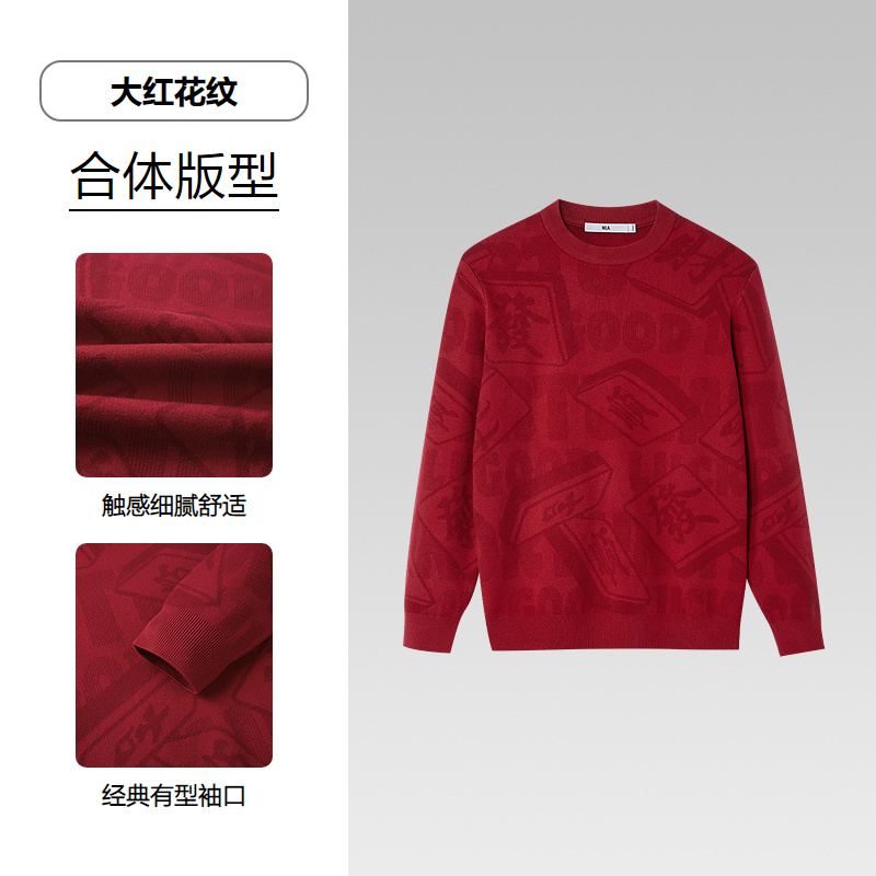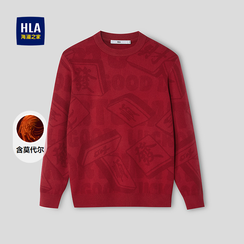 HLA海澜之家含莫代尔针织衫26春夏新满身提花喜庆休闲风长袖男HNZAD1F008A