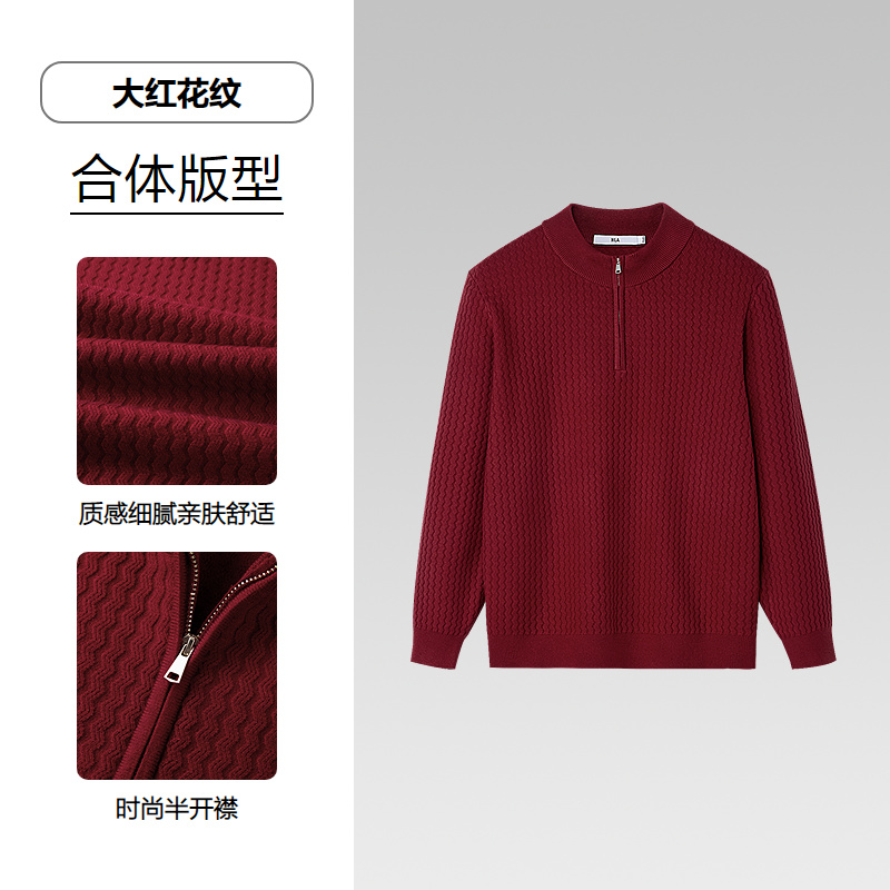 HLA海澜之家半高领长袖针织衫2026春夏新款半开襟简约上衣男HNZAD1F009A