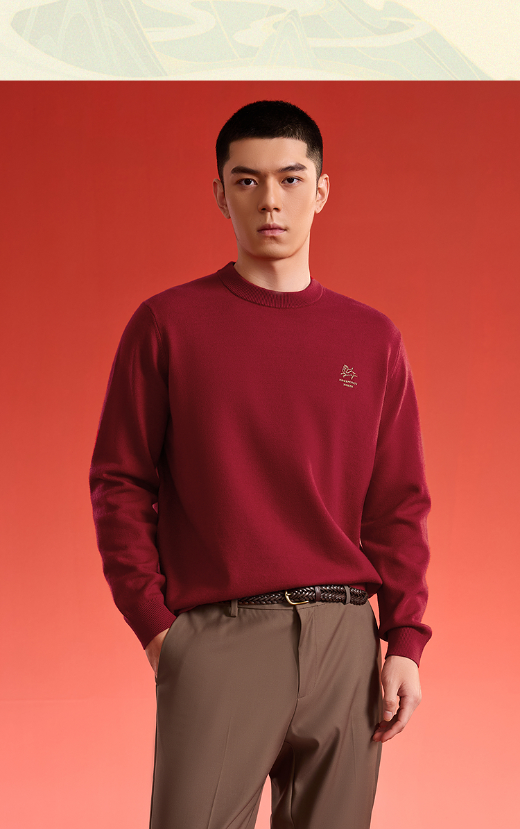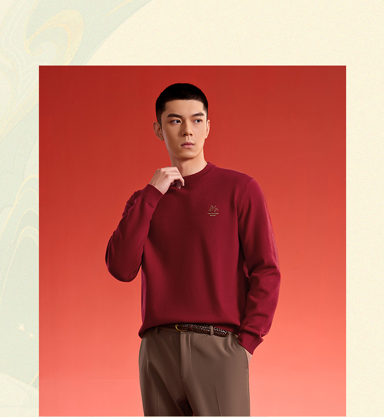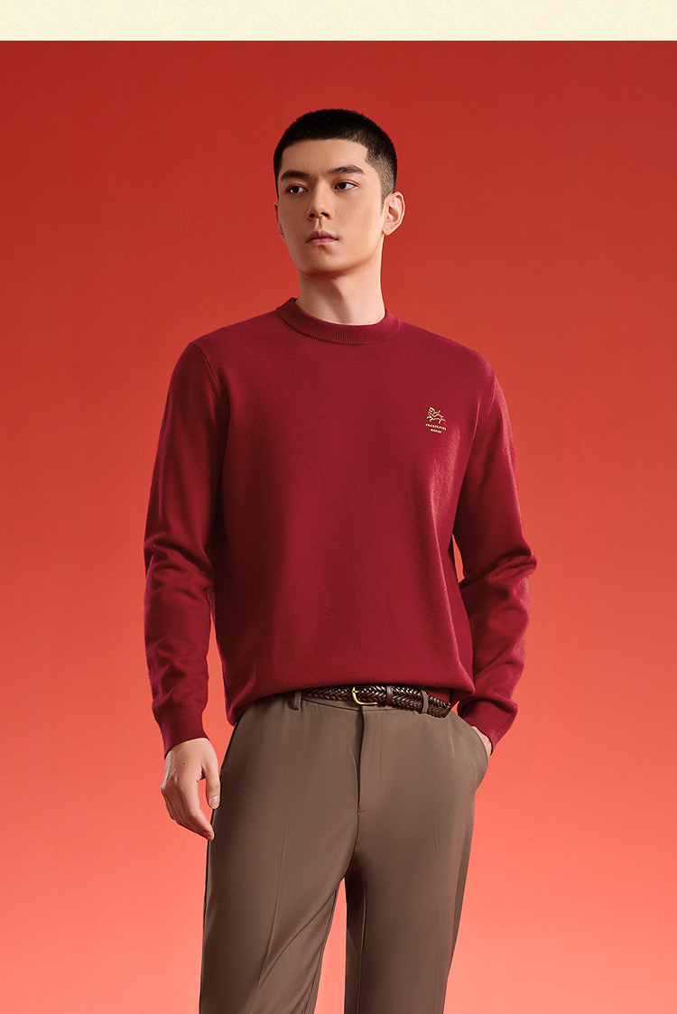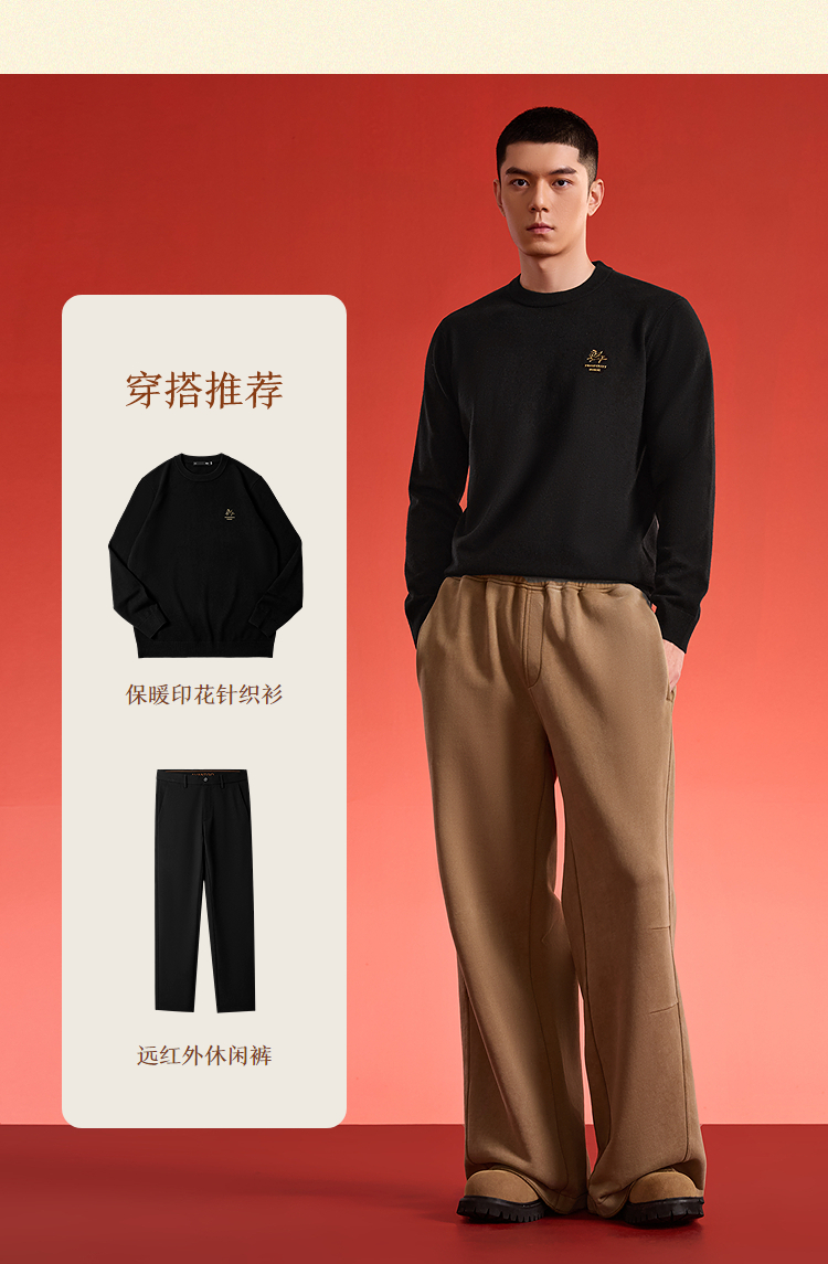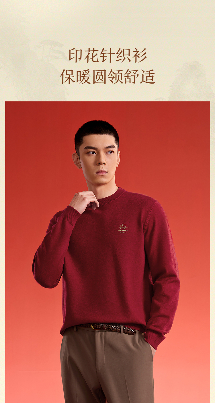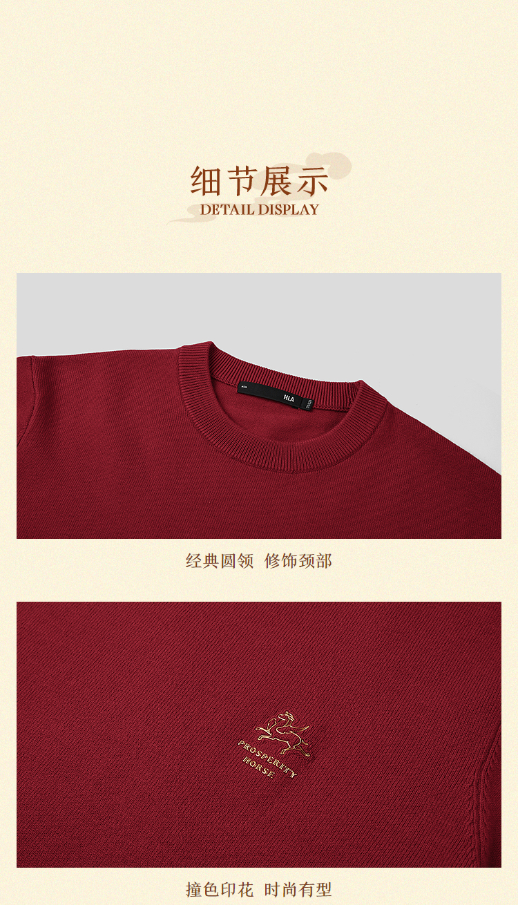 HLA海澜之家马年贺岁系列针织衫25秋新圆领印花保暖休闲风毛衣男HNZAW3J056A