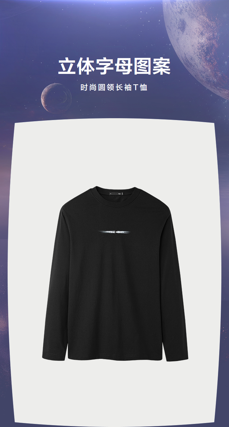 HLA海澜之家三体联名系列长袖T恤26春夏新立体字母圆领上衣男HNTAW1F002A