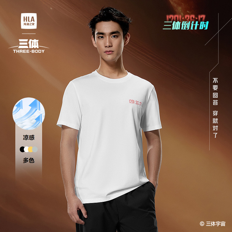HLA海澜之三体·倒计时系列短袖T恤25春夏新款圆领凉感上衣男HNTBW2J135A