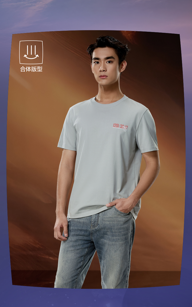 已选:HLA海澜之三体·倒计时系列短袖T恤25春夏新款圆领凉感上衣男HNTBW2J135A