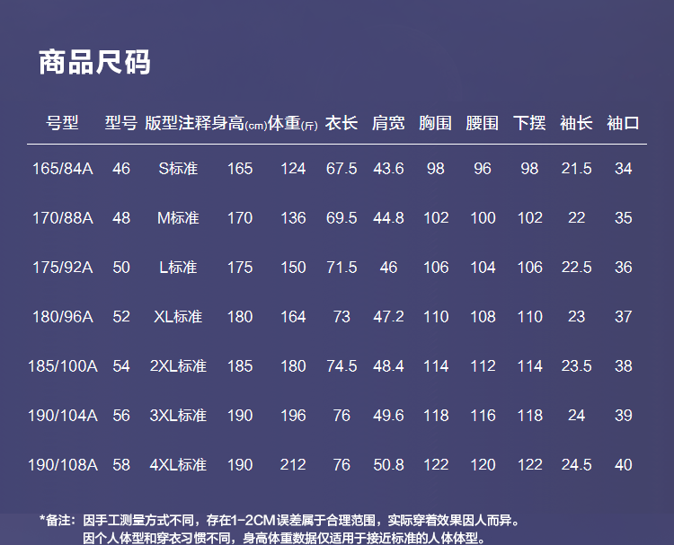 尺码颜色
