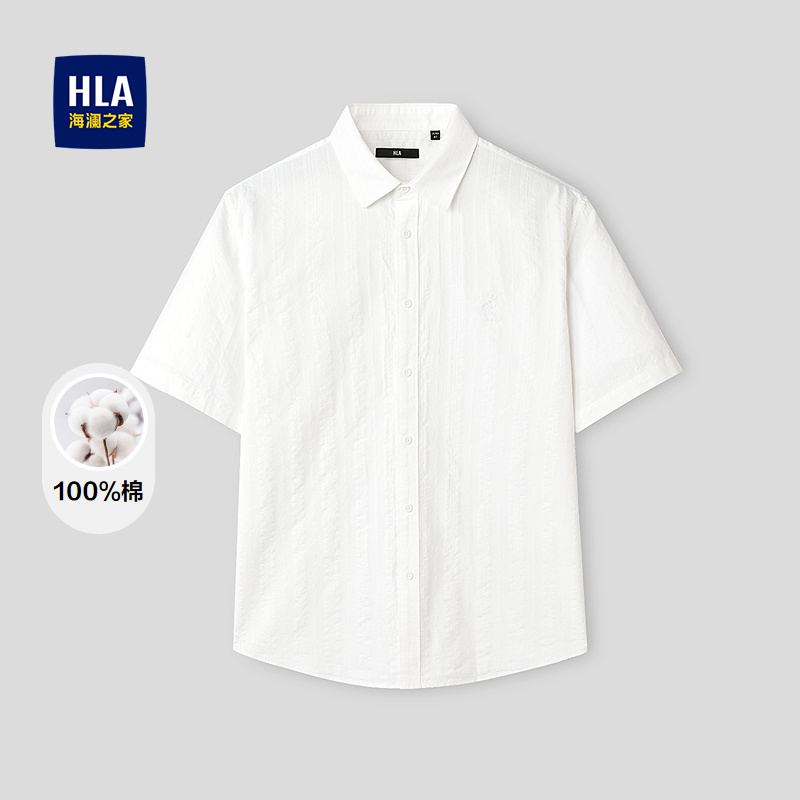 ¥218.00HLA海澜之家提花条纹短袖休闲衬衫26春夏新款纯棉精致绣花短衬男HNECD2F082A总销量:0 -