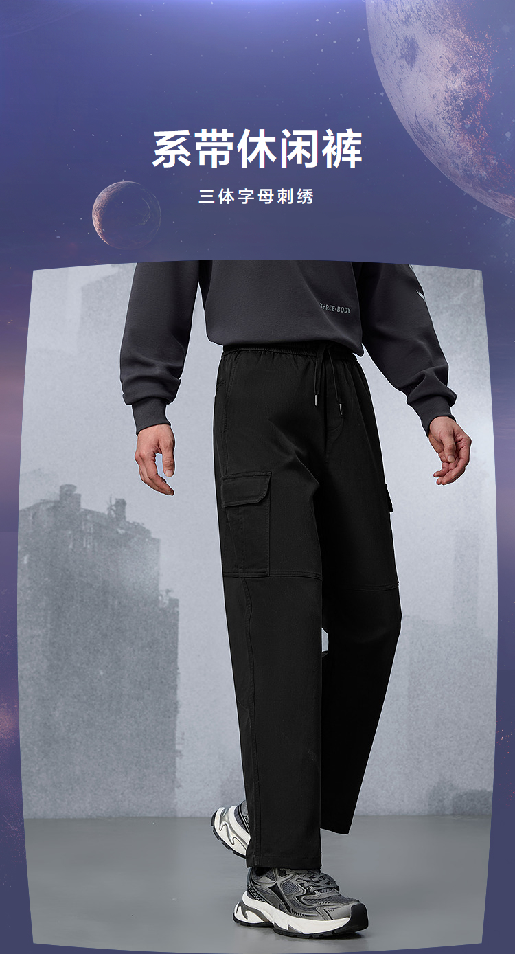 HLA海澜之家三体·红岸基地系列休闲裤25秋新松紧腰间系带裤子男HKCAW3J105A