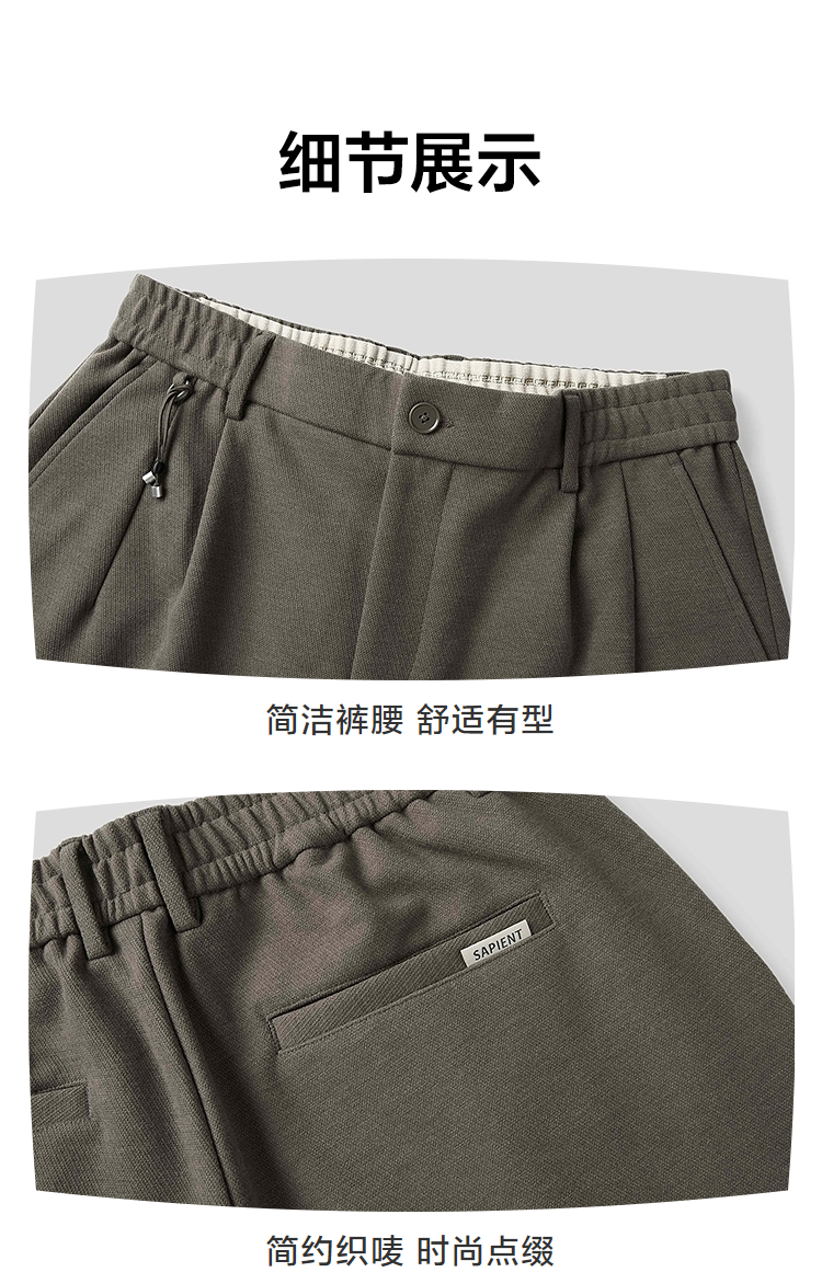 HLA海澜之家休闲九分裤2025秋冬新款远红外微弹中腰毛呢裤子男HKCBD6J239A