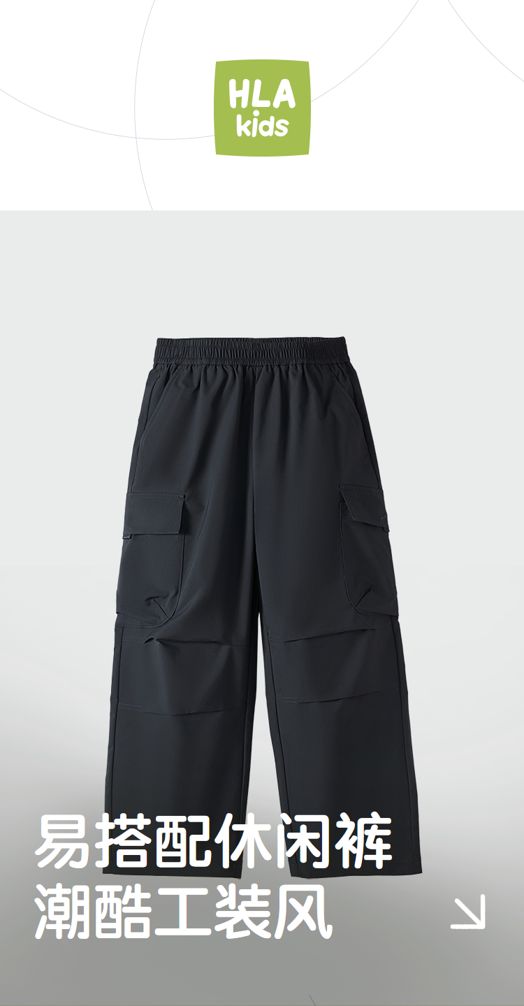 HLA海澜之家山不在高系列休闲裤26春夏新松紧腰裤子男女童装HKCCW1F008A