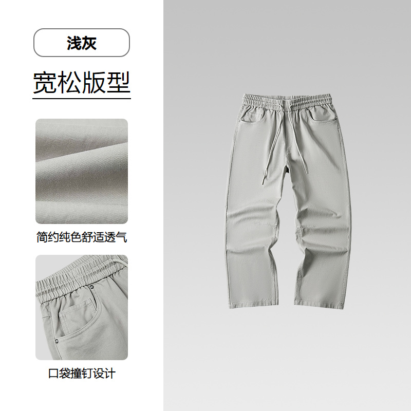 HLA海澜之家含莱赛尔休闲裤26春夏新款纯色直筒抽绳松紧腰裤子男HKCED5F013A