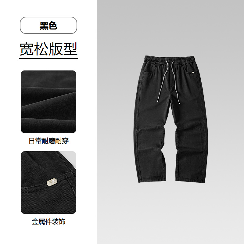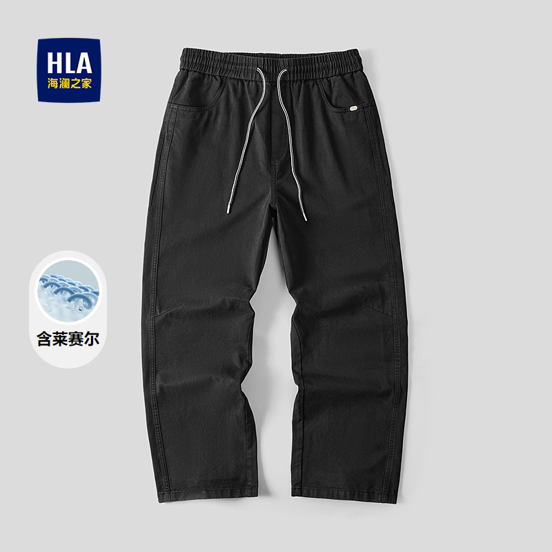 HLA海澜之家含莱赛尔时尚休闲裤26春夏新款复古宽松松紧腰长裤男HKCED5F014A