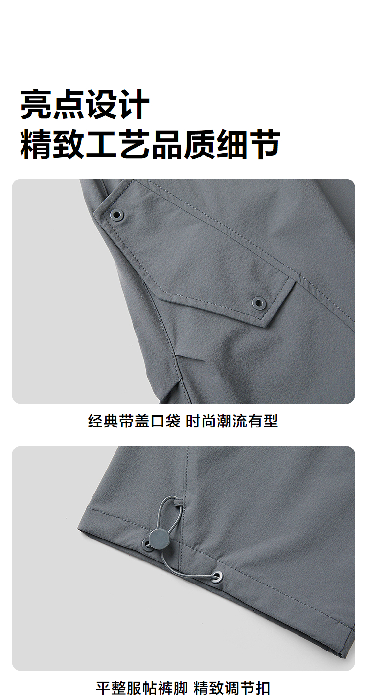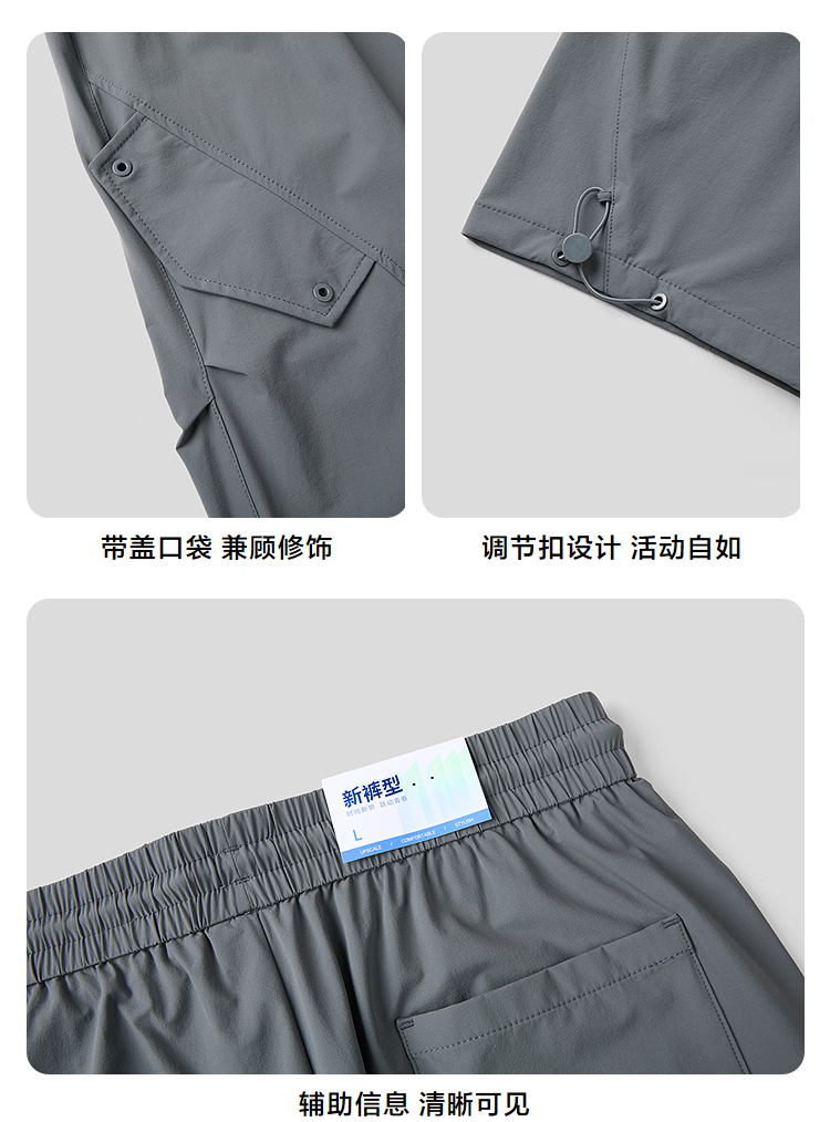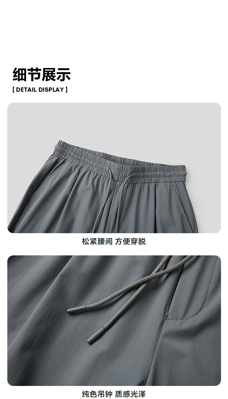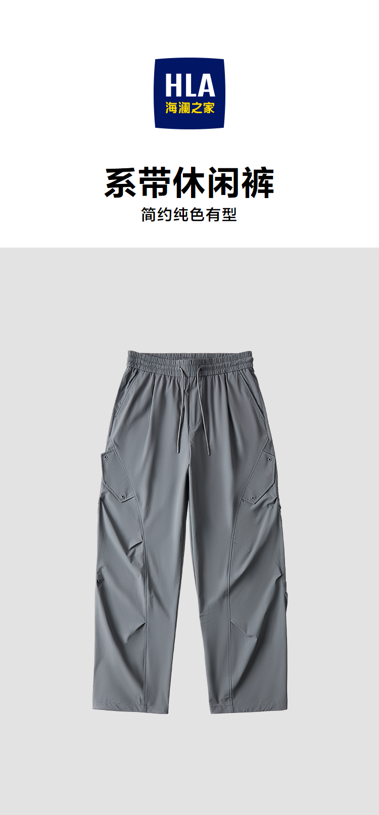 HLA海澜之家四面弹休闲裤2026春夏新抽绳系带纯色九分伞兵裤子男HKCED5F126A