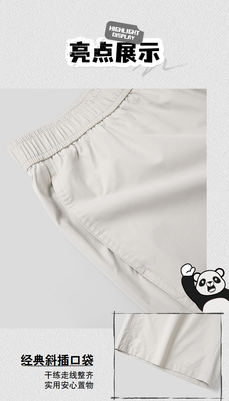 HLA海澜之家panda wowo熊猫系列休闲中裤26春夏新松紧腰间短裤男HKMCW2F002A