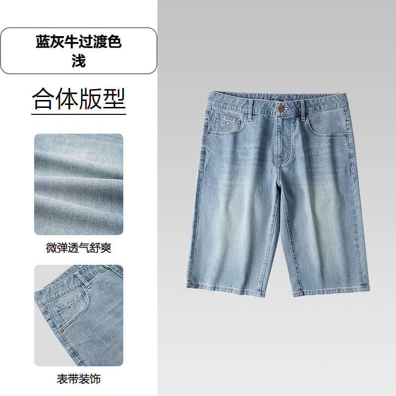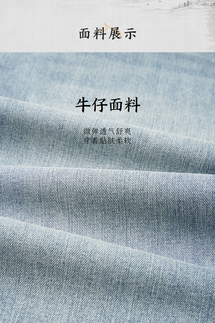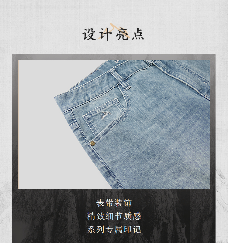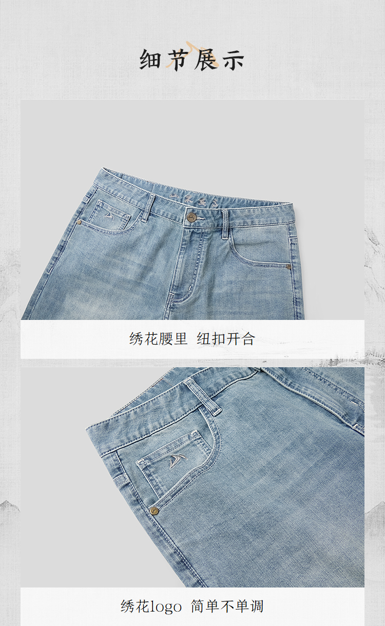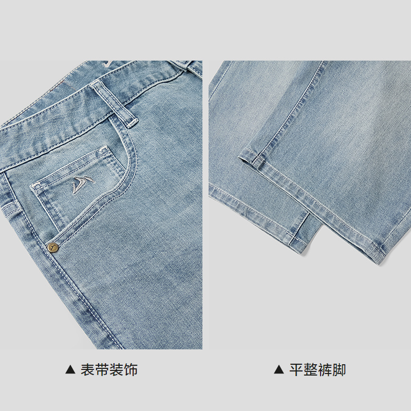 HLA海澜之家山不在高系列牛仔中裤26春夏新猫须绣花时尚六分裤男HKMNW2F017A