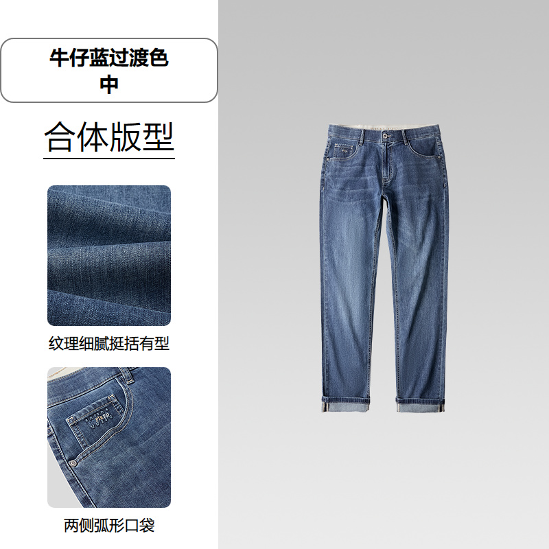 HLA海澜之家微弹牛仔裤2026春夏新款凉感含莱赛尔中腰裤子男HKNAD5F002A