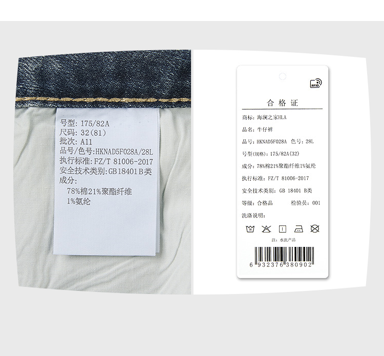 HLA海澜之家宽松直筒牛仔裤26春夏新凉感高腰微弹休闲时尚裤子男HKNAD5F028A