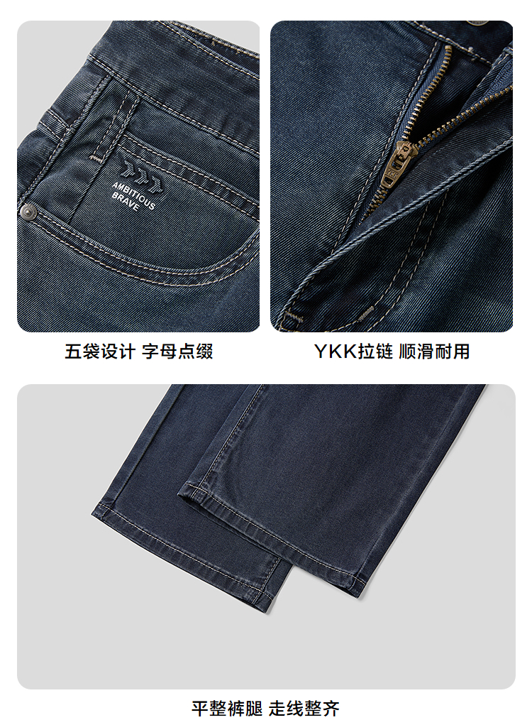 HLA海澜之家轻旅系列五袋款牛仔裤2026春夏新款凉感直筒裤子男HKNAD5F037A
