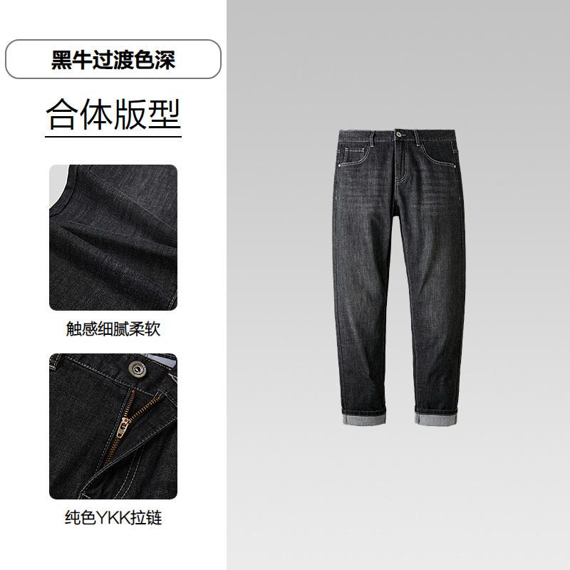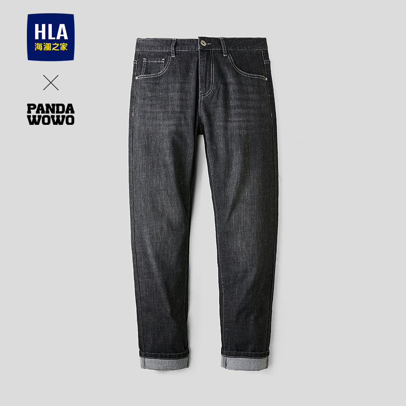 HLA海澜之家panda wowo熊猫牛仔裤26春秋新水洗腰里绣花裤子男HKNAW1F002A