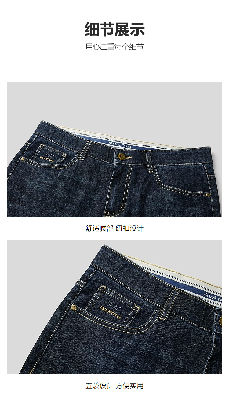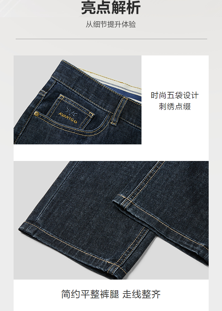 HLA海澜之家轻商务经典系列牛仔裤2026春秋新款五袋款直筒裤子男HKNAW1F007A