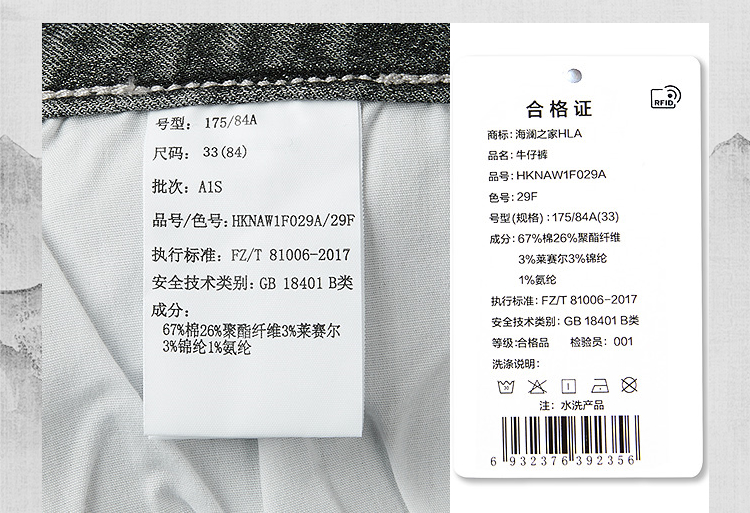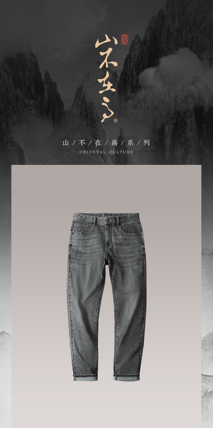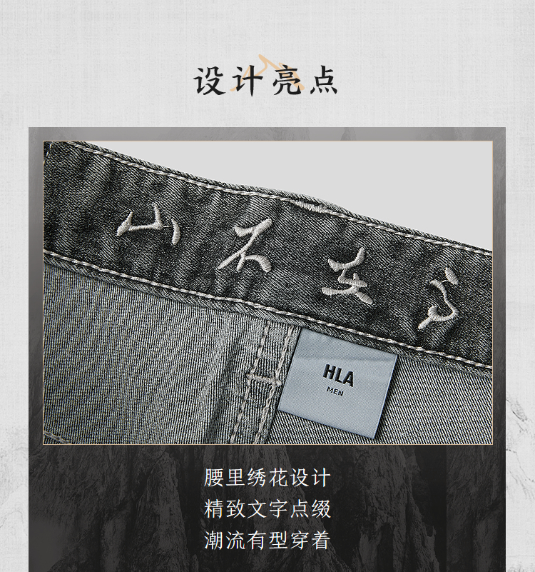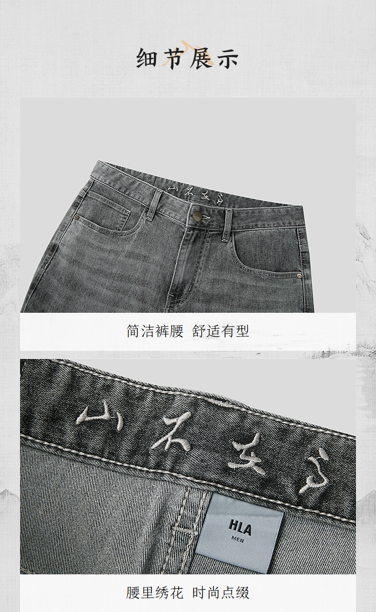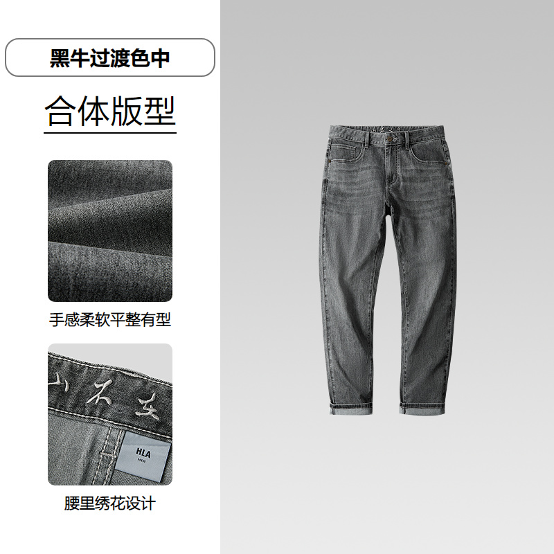 HLA海澜之家山不在高系列牛仔裤2026春夏新款微弹中腰绣花裤子男HKNAW1F029A