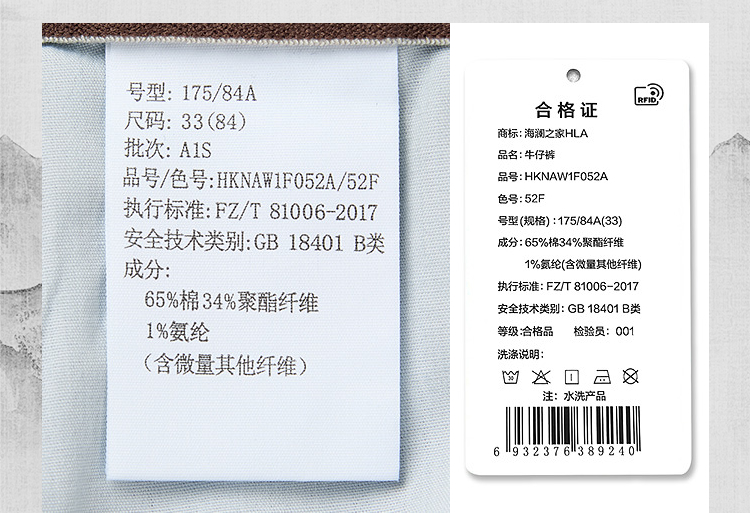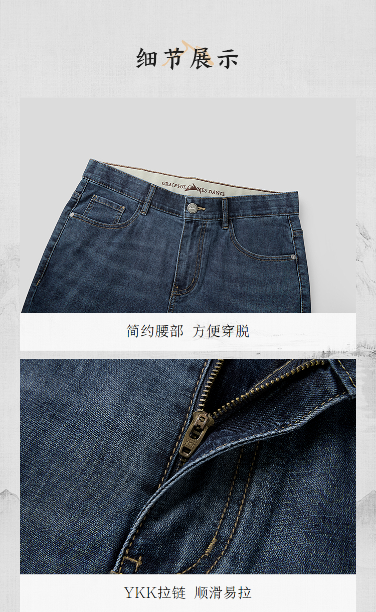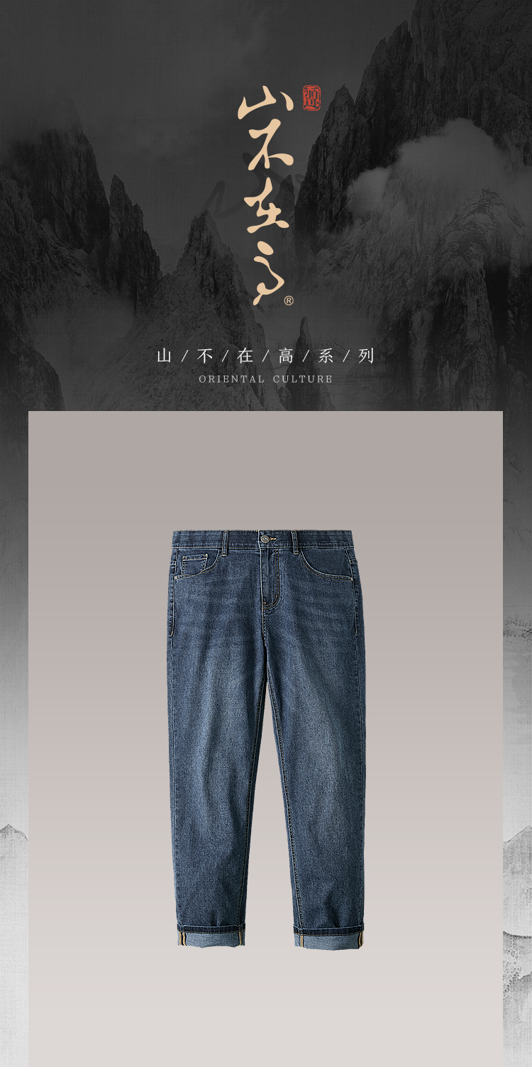 HLA海澜之家山不在高系列牛仔裤26春秋新五袋款吸湿排汗裤子男HKNAW1F052A