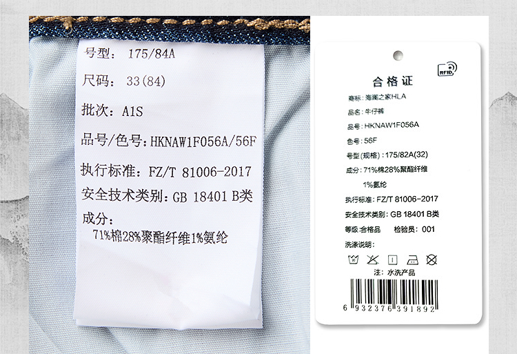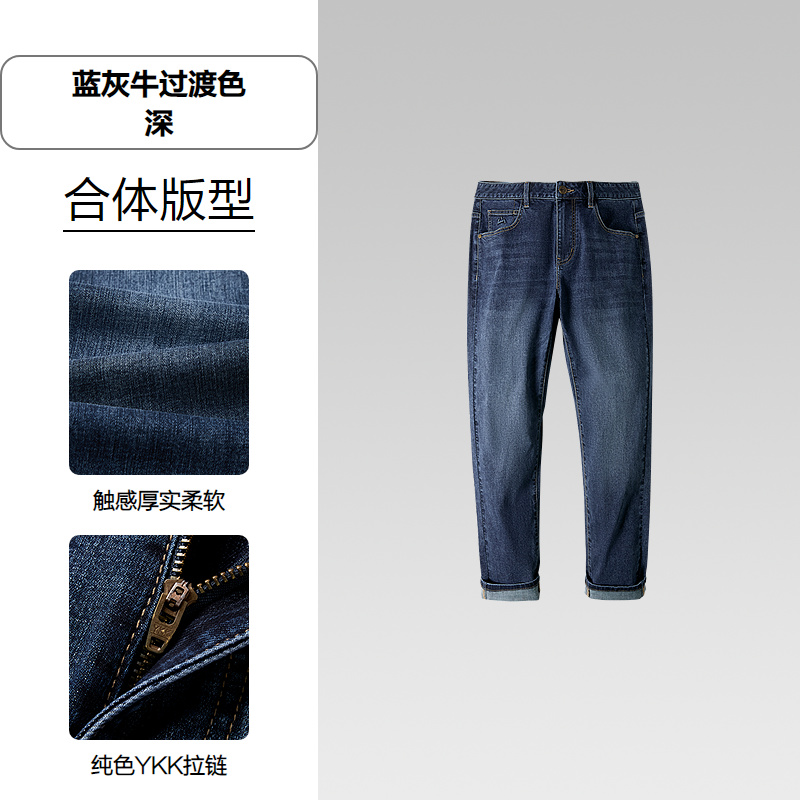 HLA海澜之家山不在高系列牛仔裤26春秋新水洗直筒裤子男HKNAW1F056A