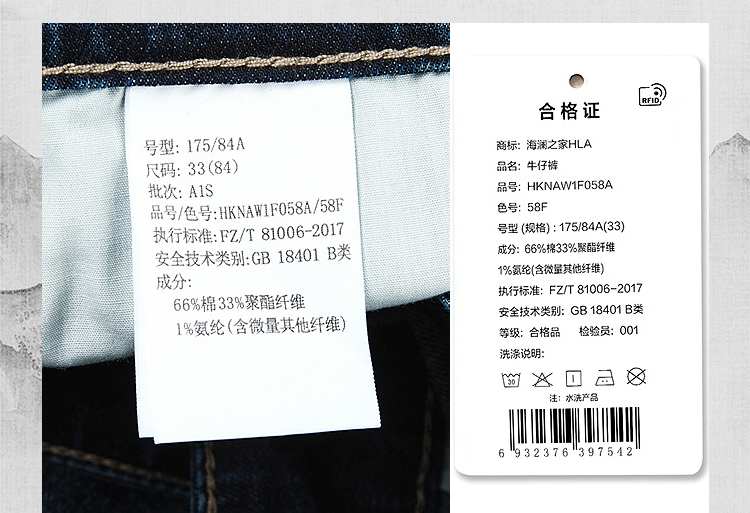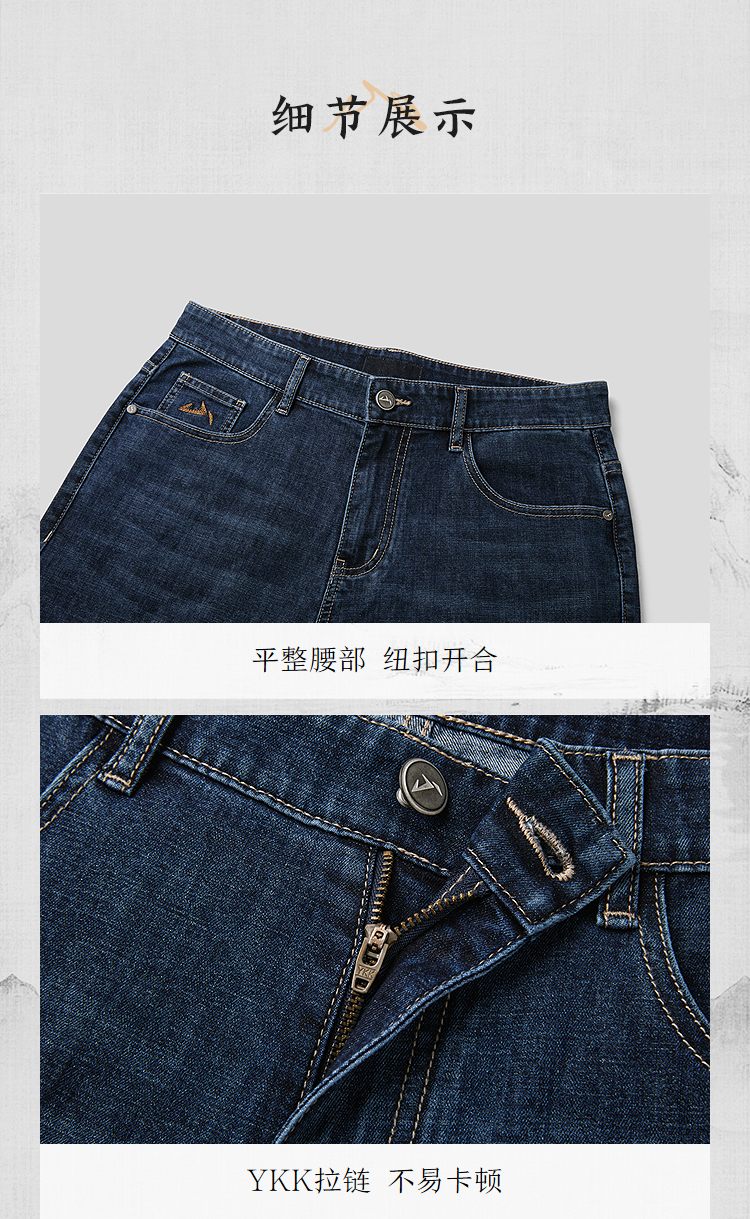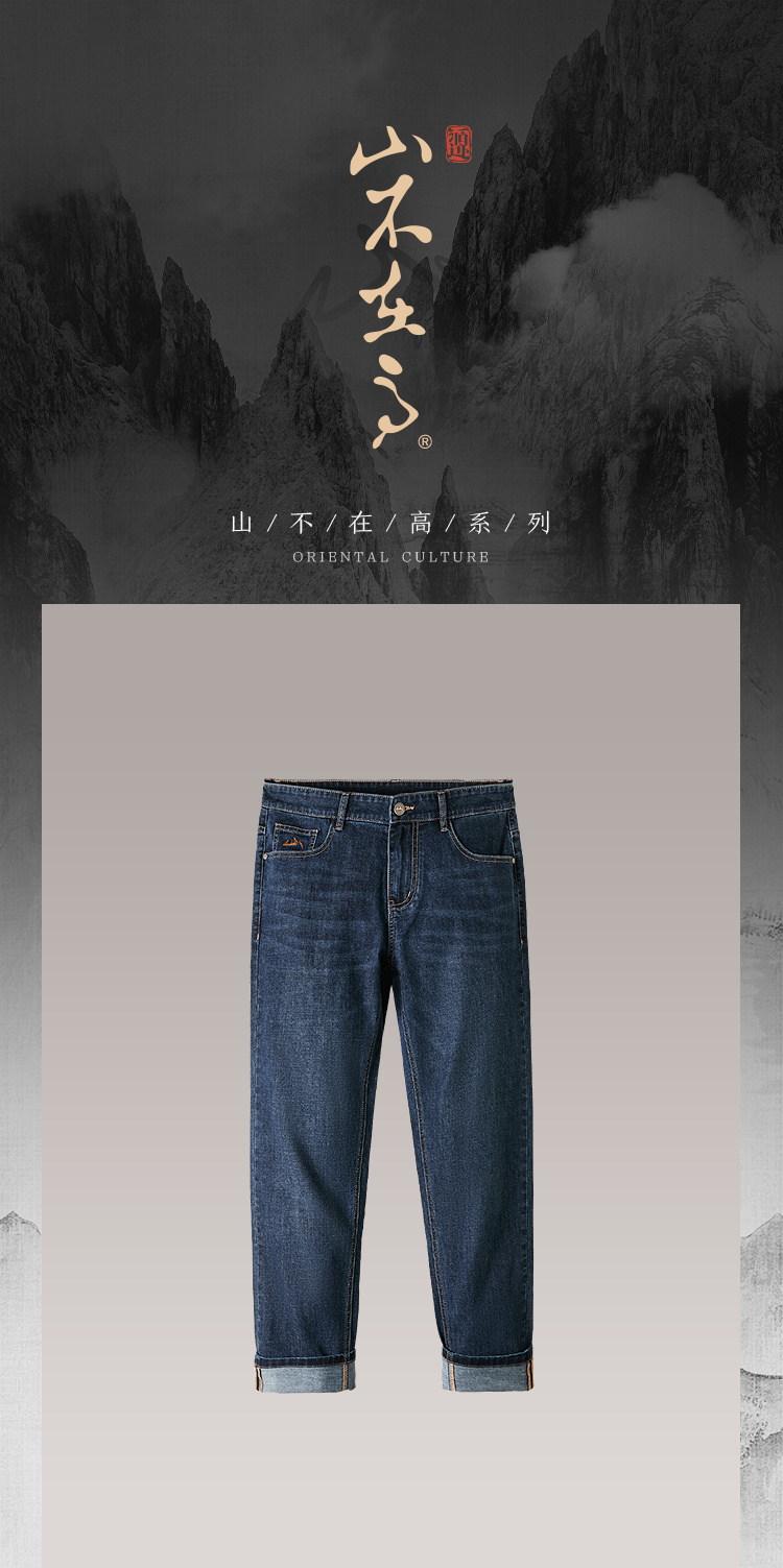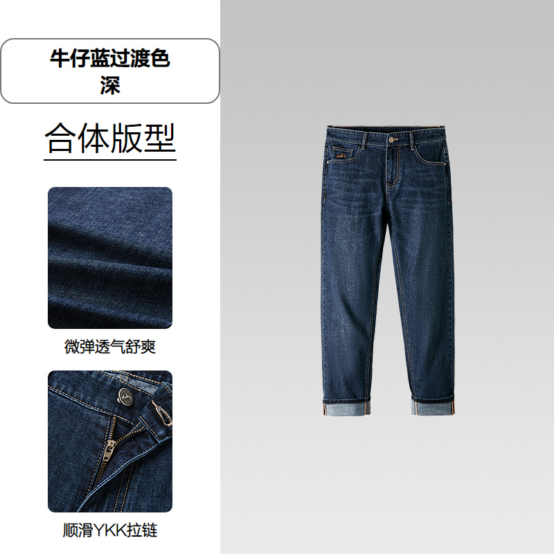 HLA海澜之家山不在高系列牛仔裤26春秋新水洗时尚猫须绣花裤子男HKNAW1F058A