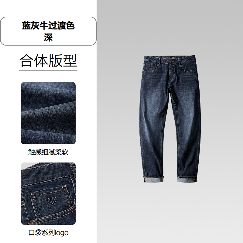 HLA海澜之家凉感牛仔裤2026春夏新款亦心即为系列直筒绣花长裤男HKNAW1F077A
