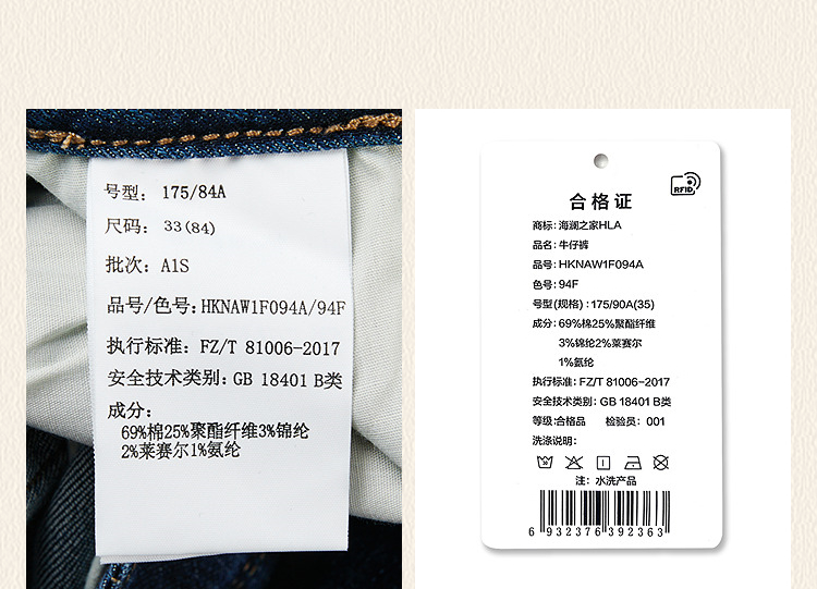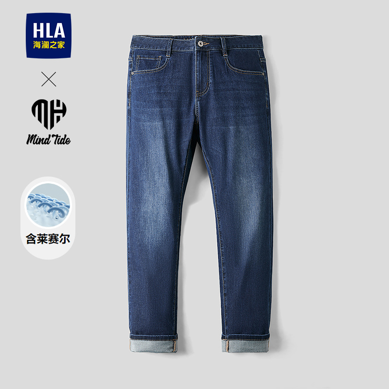 HLA海澜之家亦心即为系列牛仔裤26春秋新水洗绣花含莱赛尔裤子男HKNAW1F094A