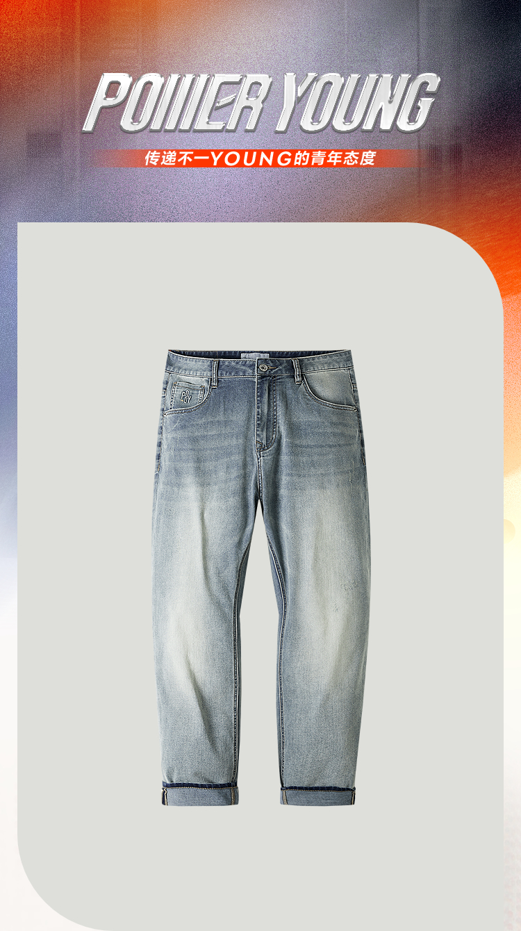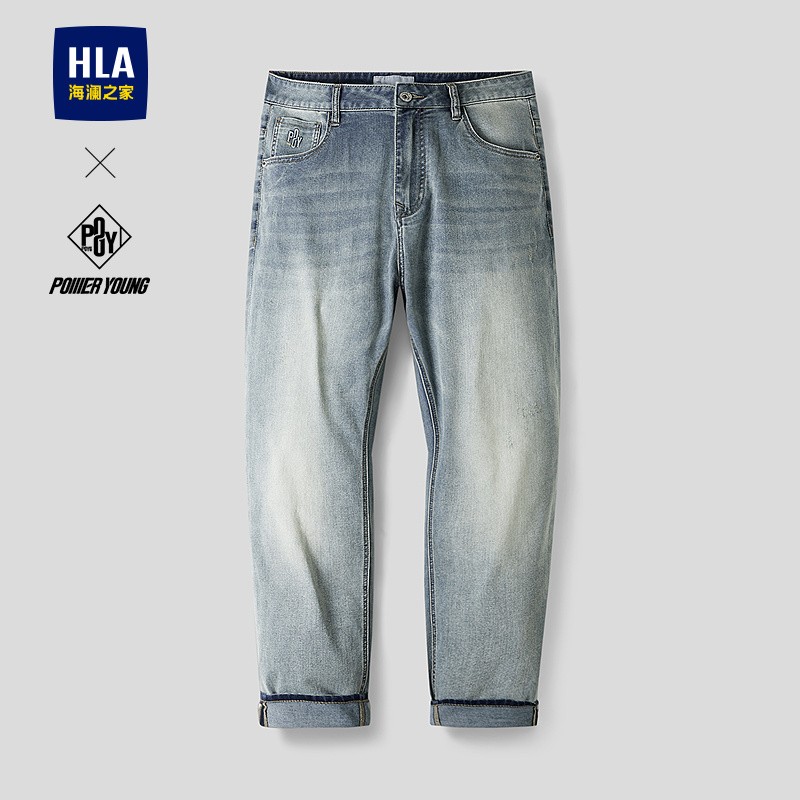 HLA海澜之家POWER YOUNG系列牛仔裤26春秋新五袋窄脚九分裤子男HKNAW2F037A