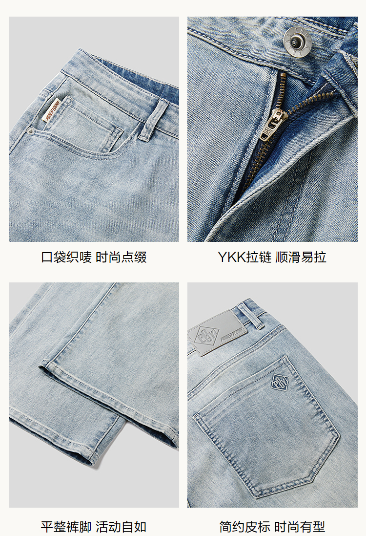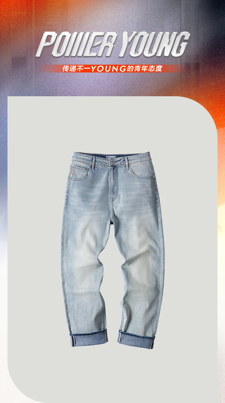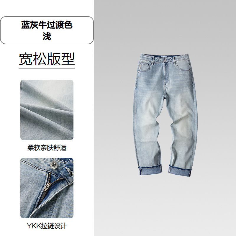 HLA海澜之家POWER YOUNG系列牛仔裤26春秋新款猫须宽松阔腿裤男HKNAW2F043A