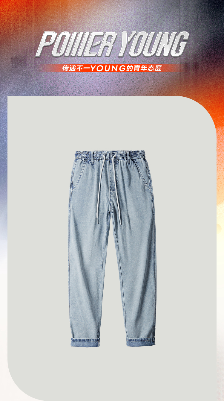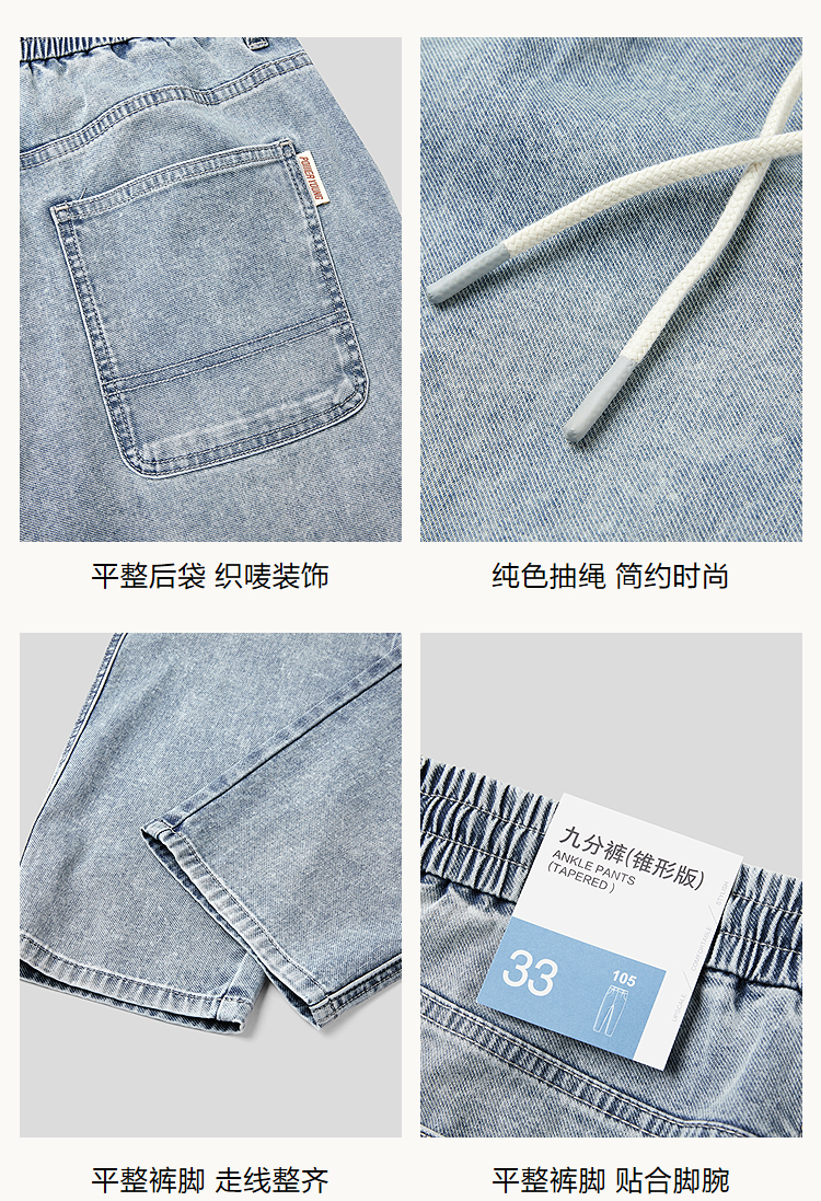 HLA海澜之家POWER YOUNG系列牛仔裤26春夏新锥形水洗九分裤子男HKNAW2F044A