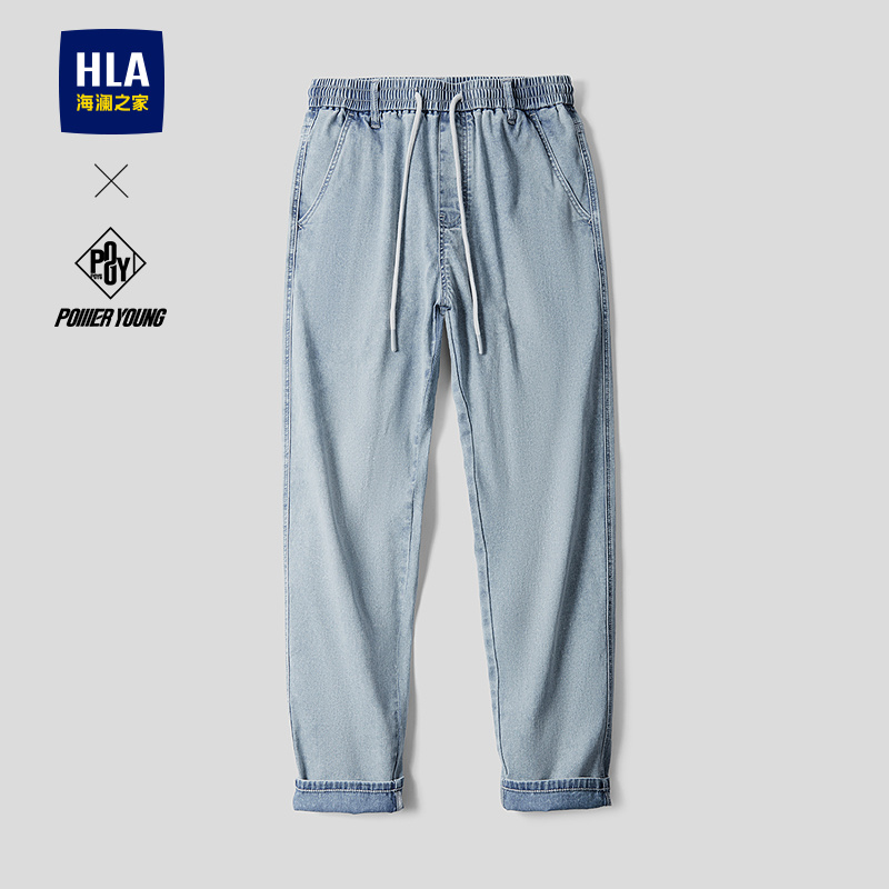 HLA海澜之家POWER YOUNG系列牛仔裤26春夏新锥形水洗九分裤子男HKNAW2F044A
