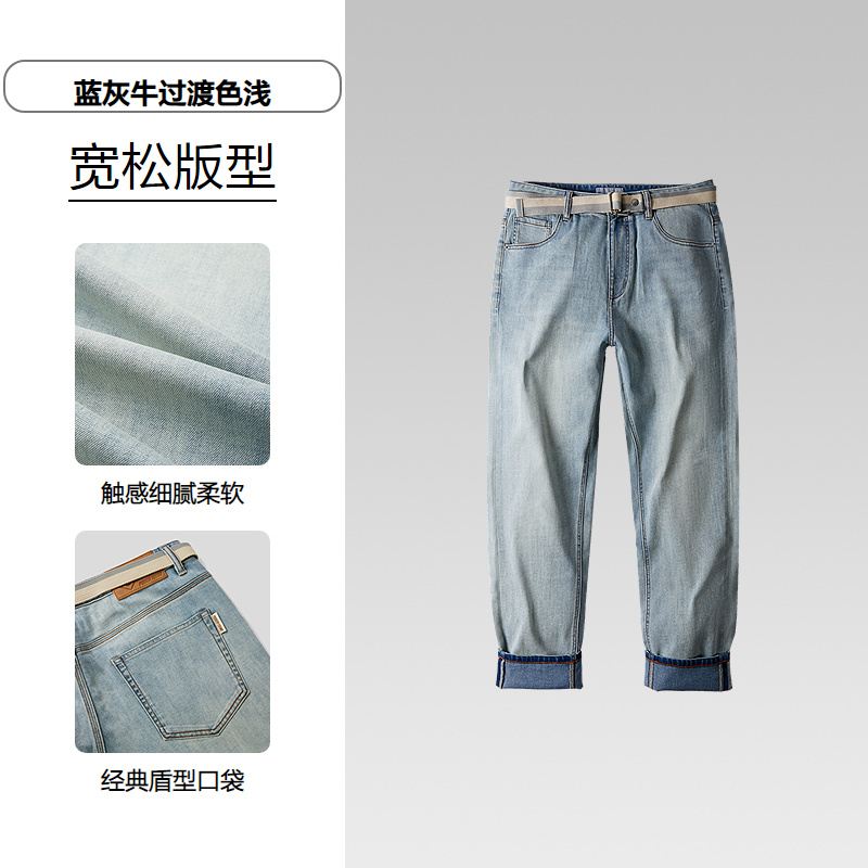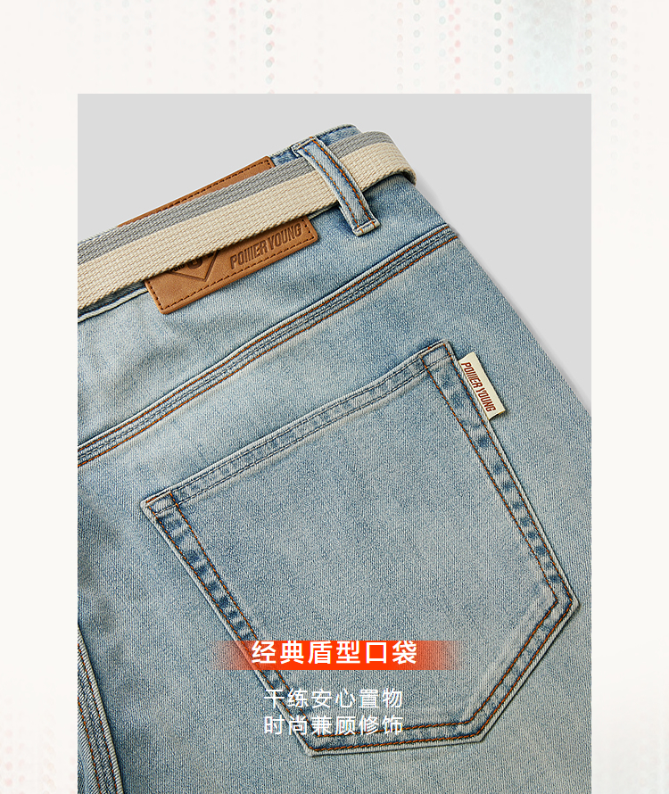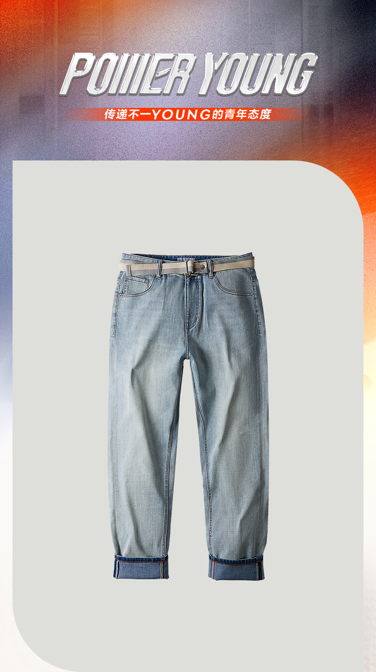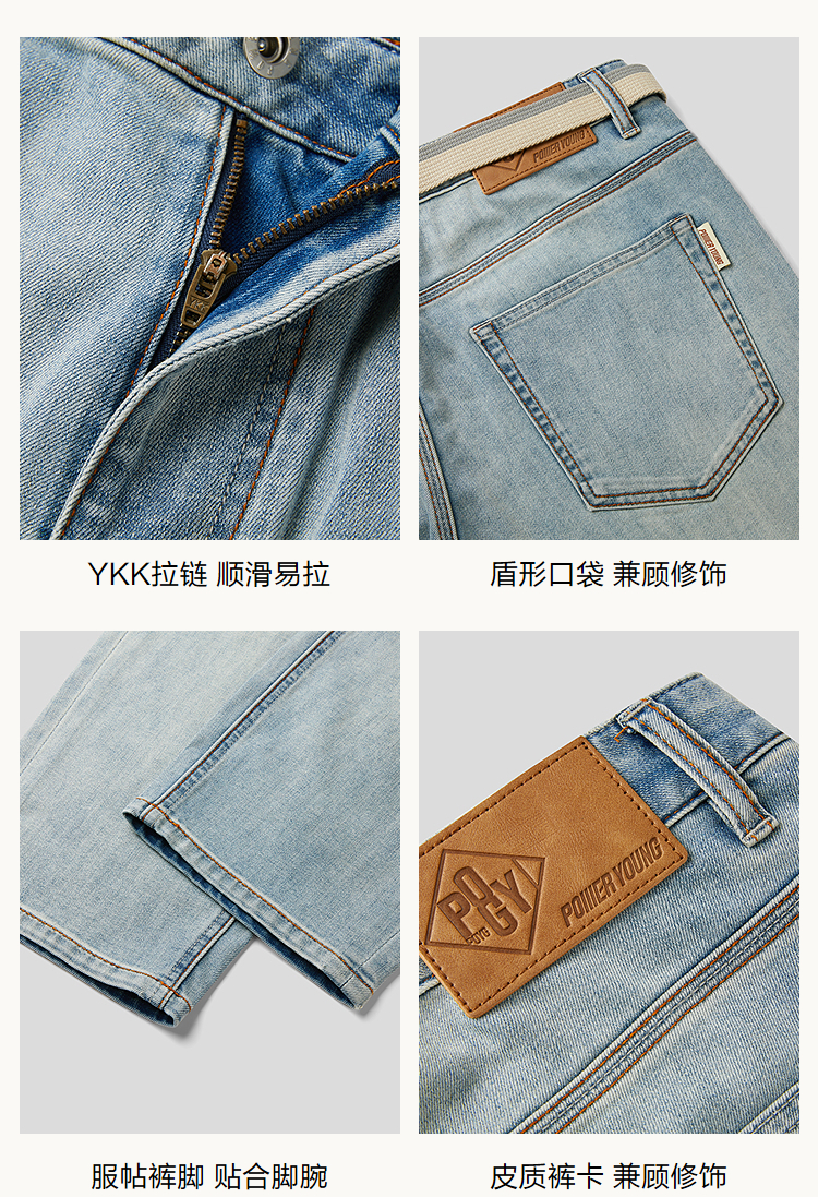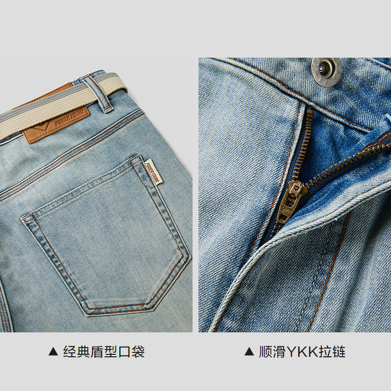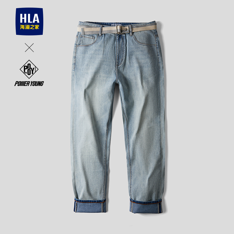 HLA海澜之家POWER YOUNG系列牛仔裤26春秋新五袋九分弹力裤子男HKNAW2F047A