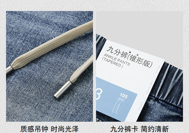HLA海澜之家panda wowo熊猫系列牛仔裤26春夏新锥形九分裤子男HKNAW2F068A