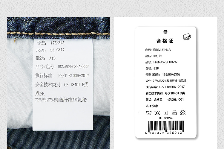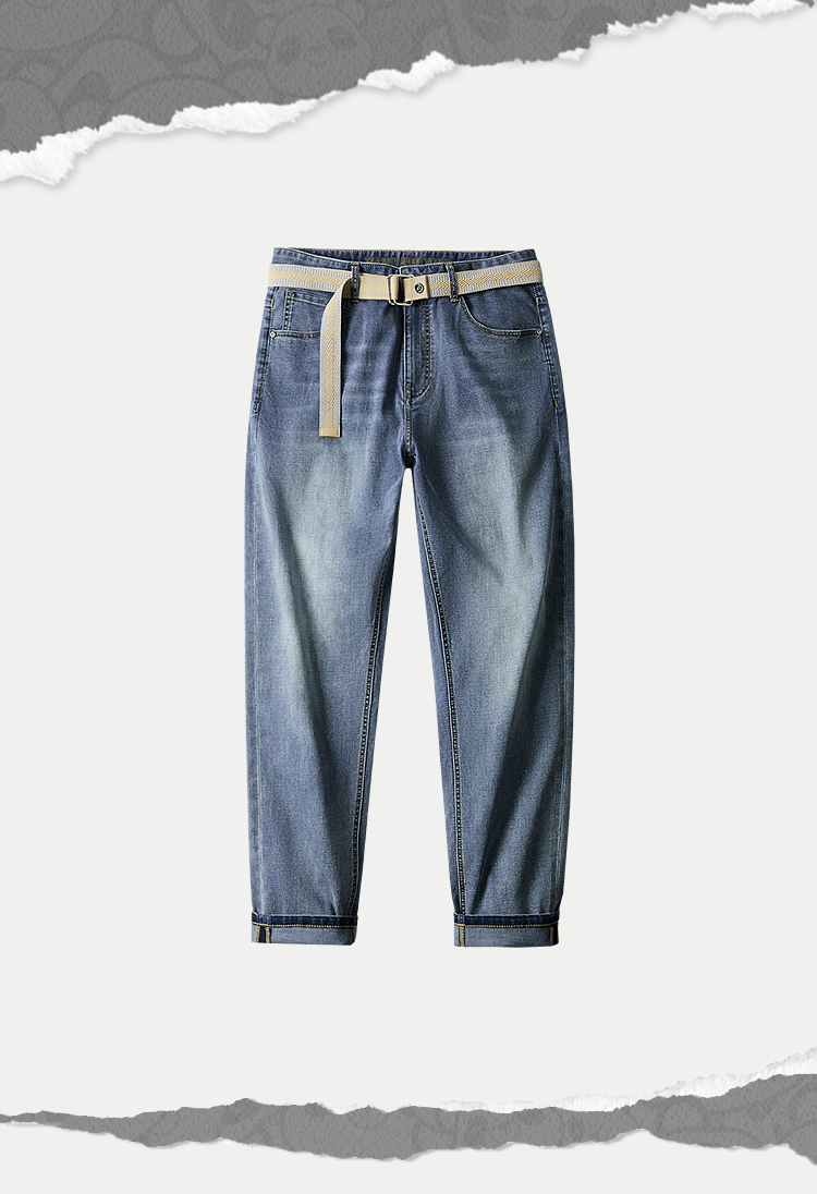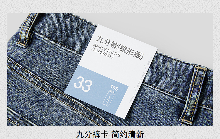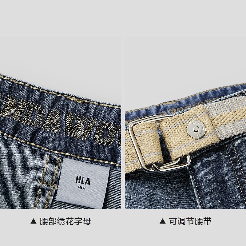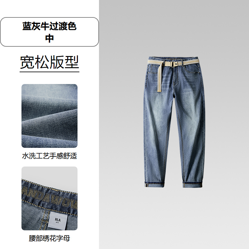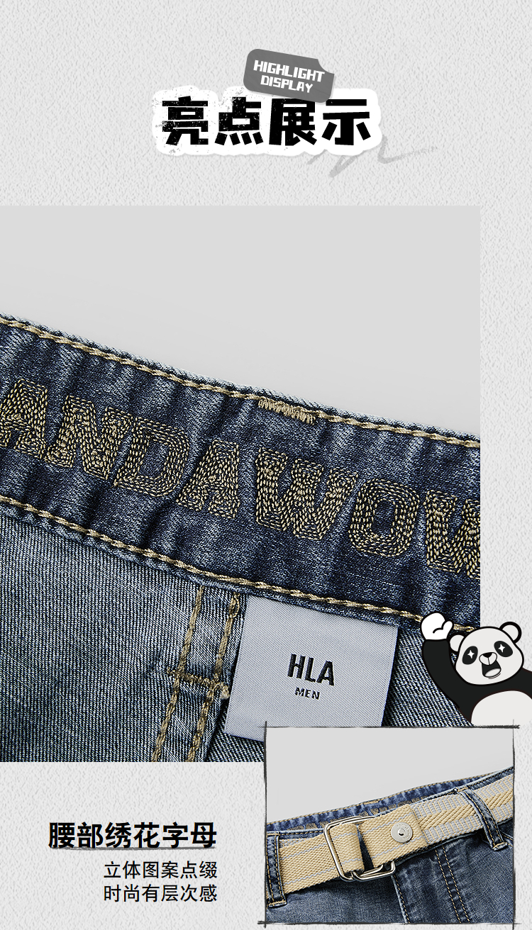 HLA海澜之家panda wowo熊猫系列牛仔裤26春夏新锥形水洗九分裤男HKNAW2F082A