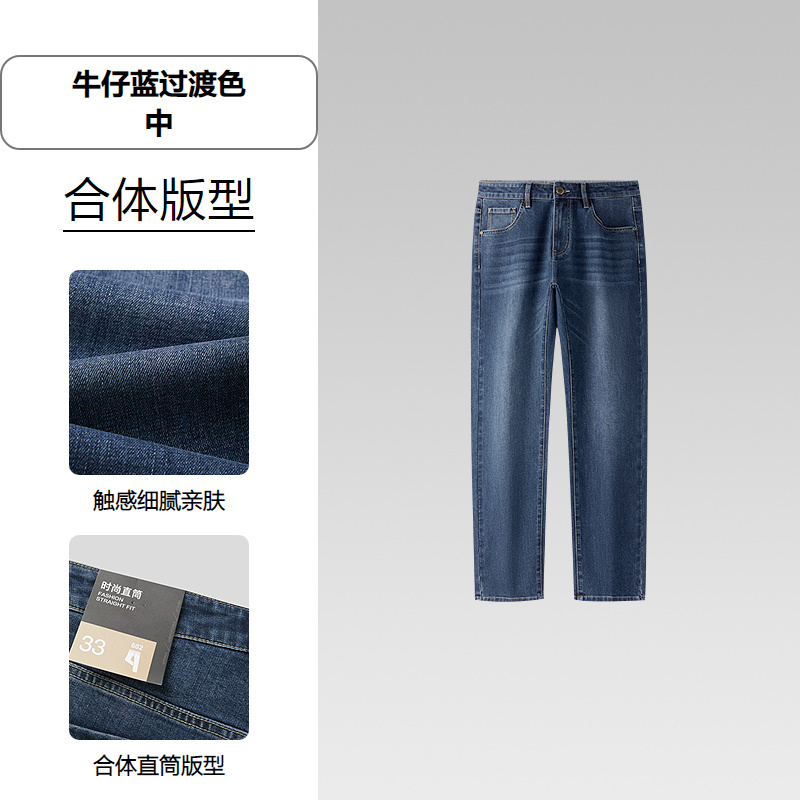 HLA海澜之家轻商务经典系列牛仔裤25秋新含莫代尔五袋直筒裤子男HKNAW3J192A