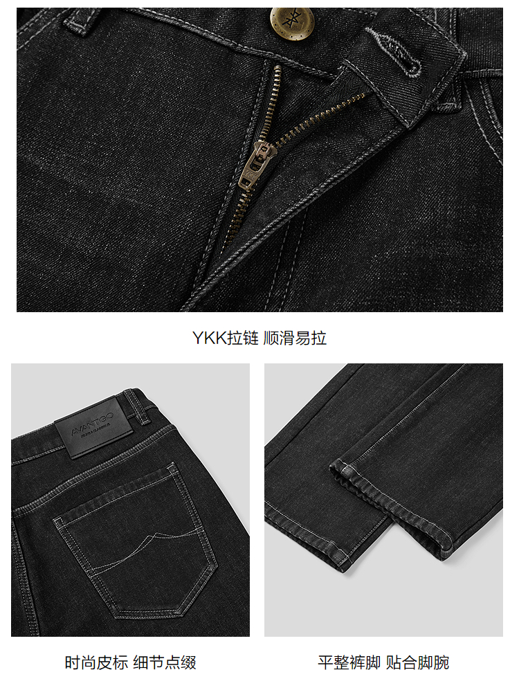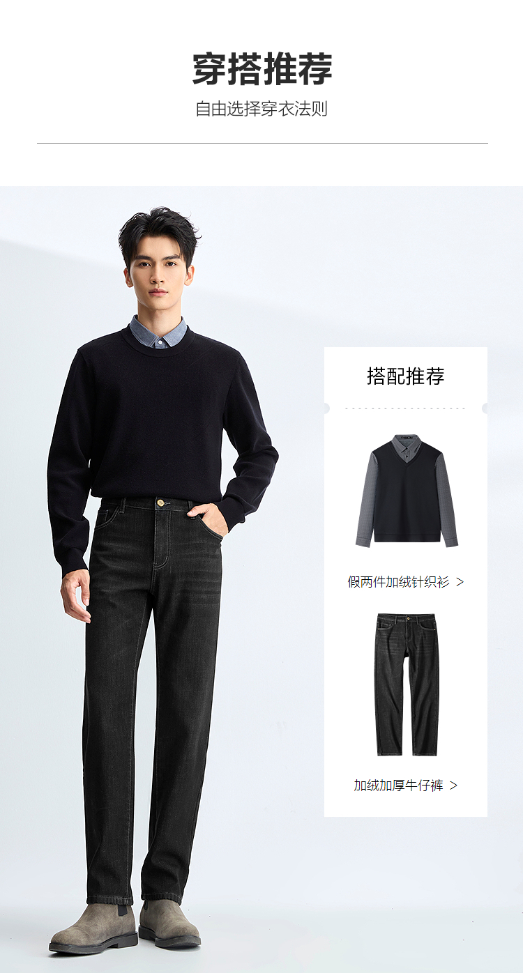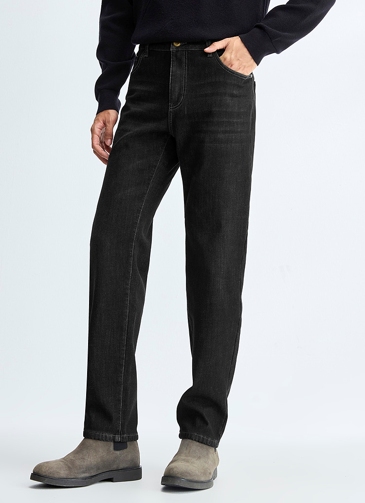 HLA海澜之家轻商务经典系列牛仔裤25秋冬新款中腰加绒加厚裤子男HKNAW4J193A