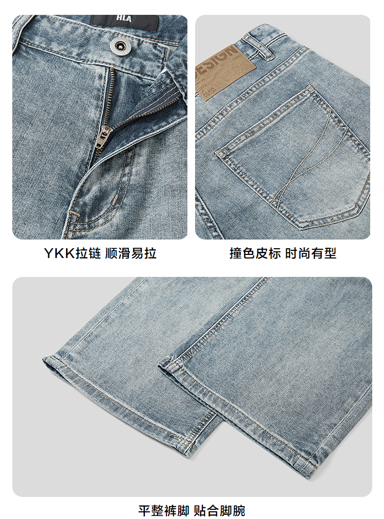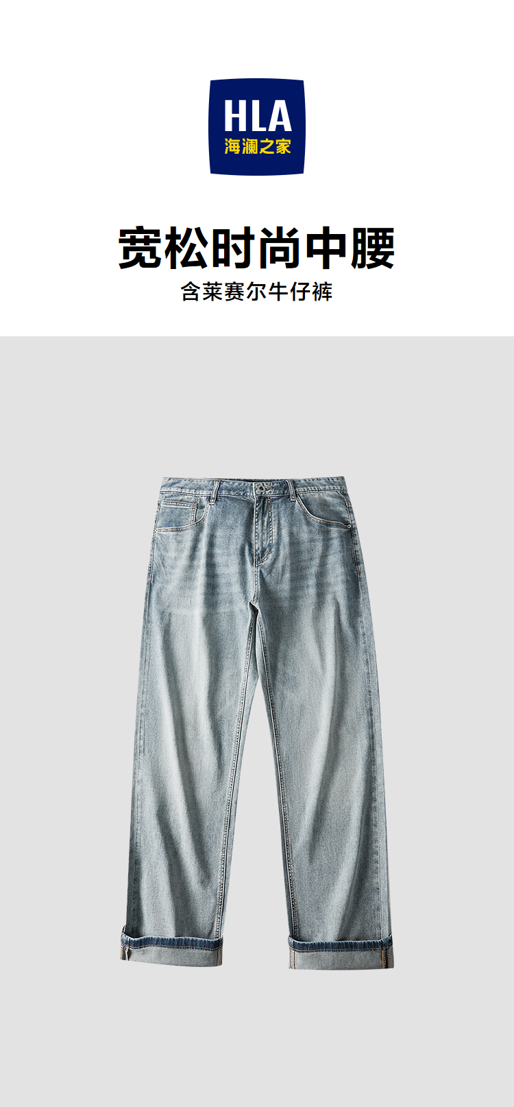 HLA海澜之家时尚牛仔裤2026春夏新款宽松阔腿含莱赛尔中腰裤子男HKNBD5F001A