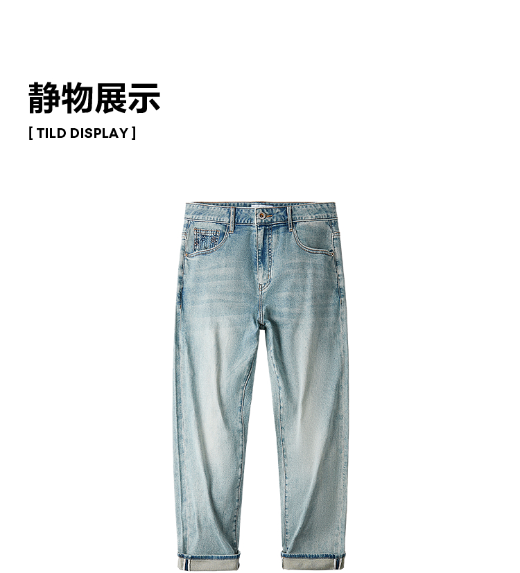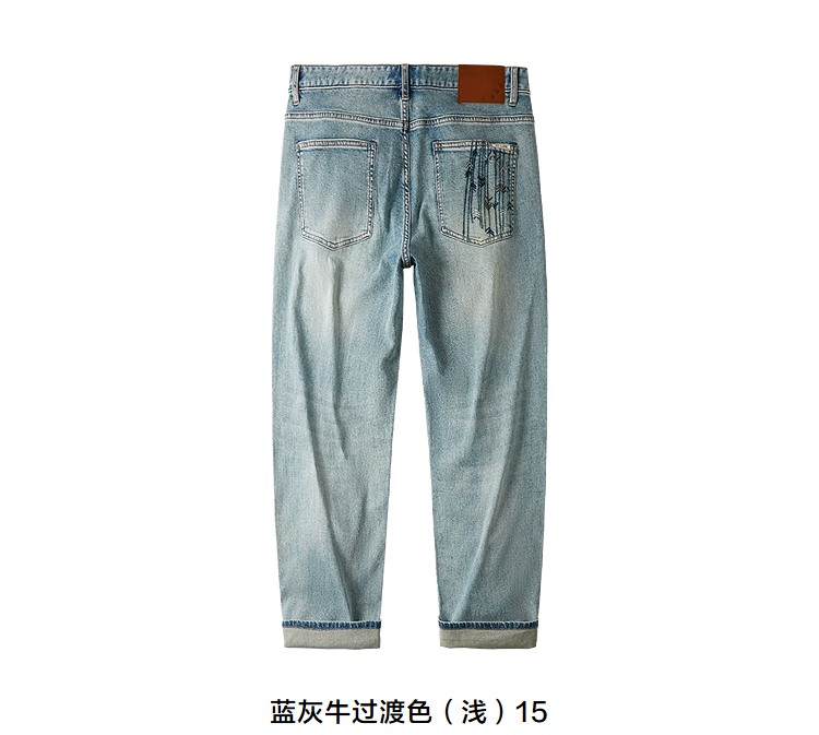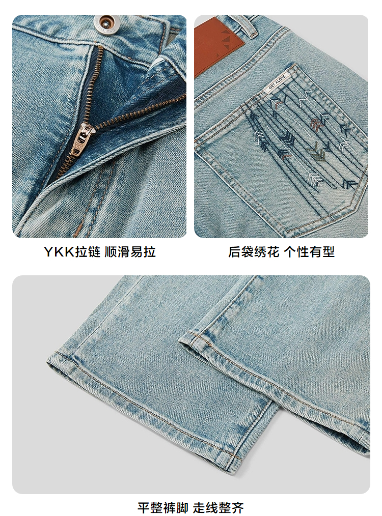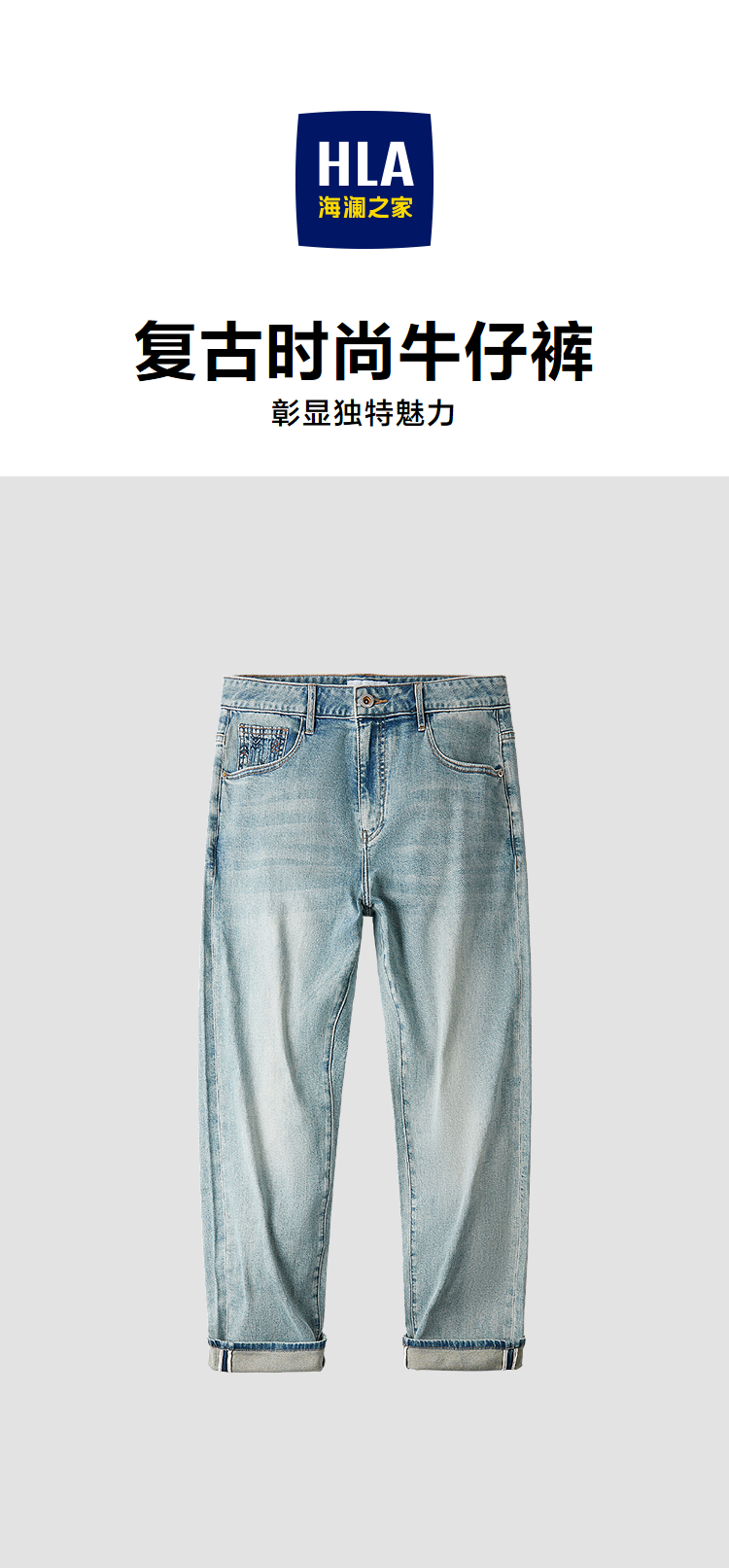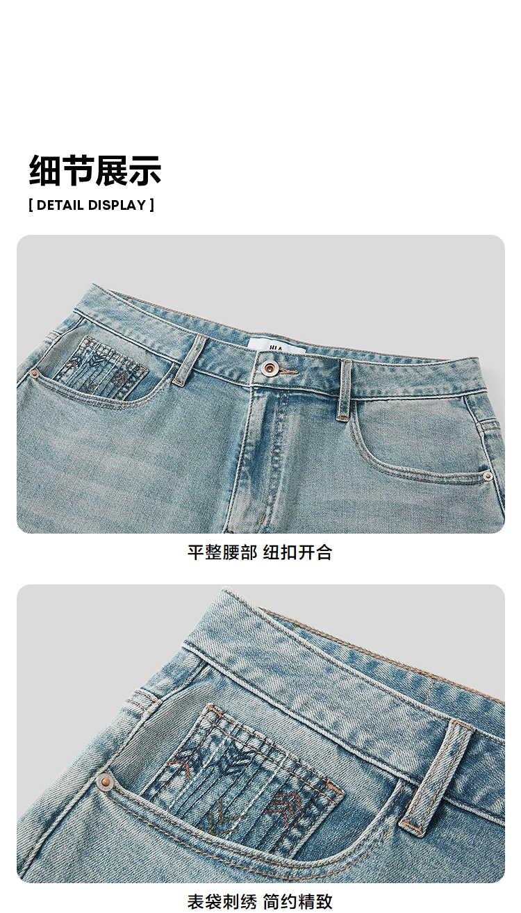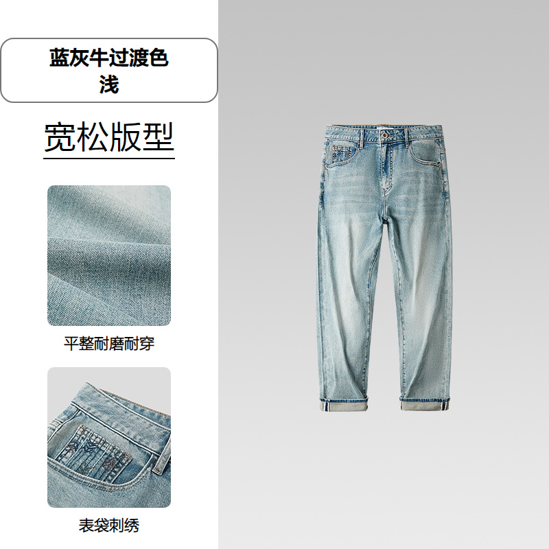 HLA海澜之家复古时尚牛仔裤2026春夏新款宽松绣花微弹休闲裤子男HKNBD5F015A