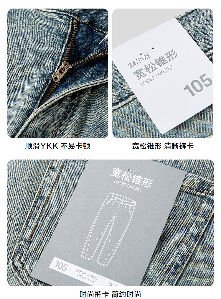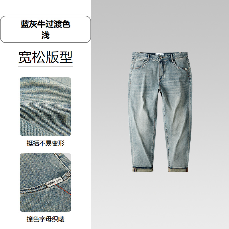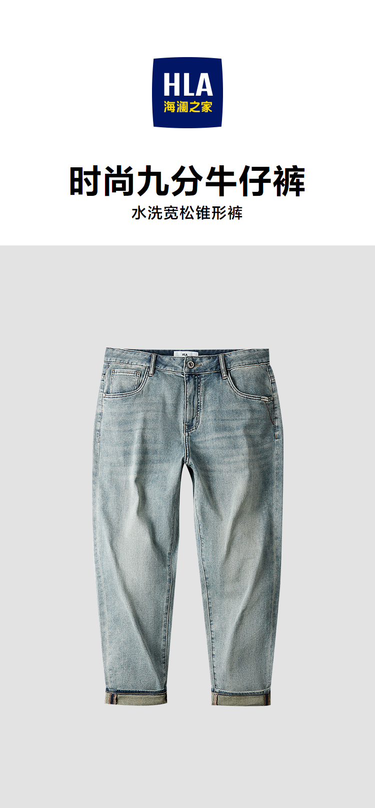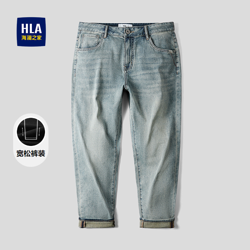 HLA海澜之家时尚牛仔裤26春夏新纯色水洗工艺宽松锥形九分裤子男HKNJD5F107A