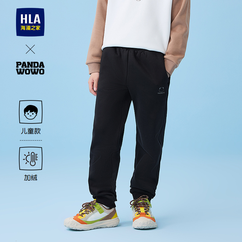 HLA海澜之家panda wowo熊猫卫裤25秋冬新加绒保暖裤子男童装HKZBW4J007A