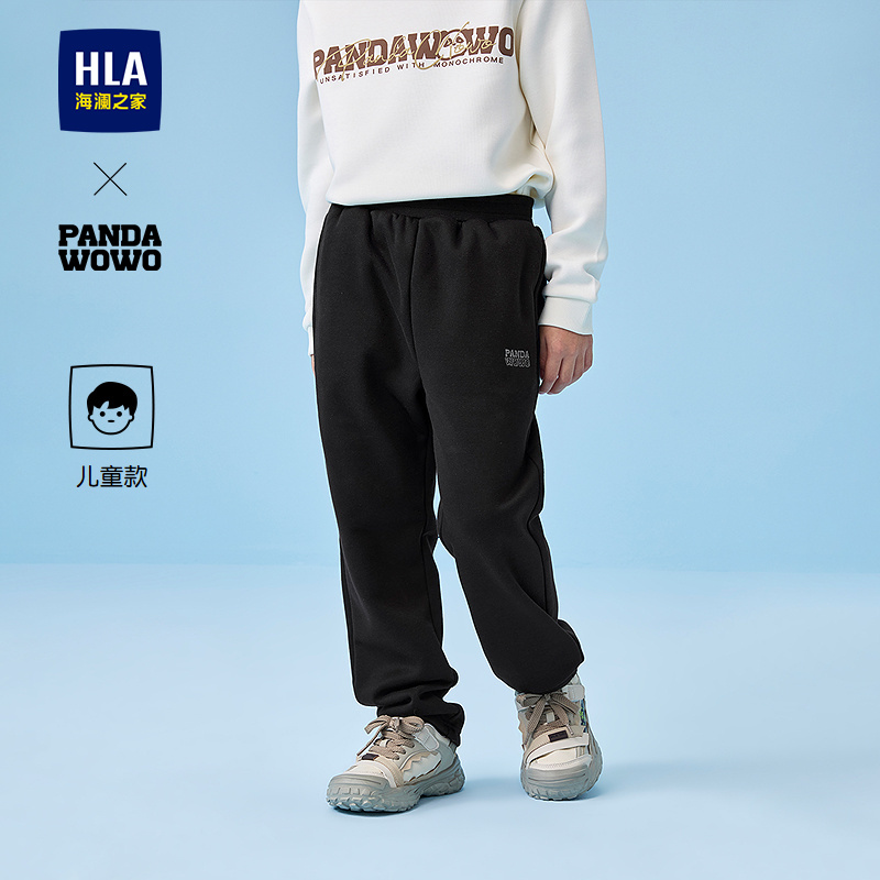 HLA海澜之家panda wowo熊猫休闲裤25秋冬新撞色保暖裤子男女童HKZBW4J008A