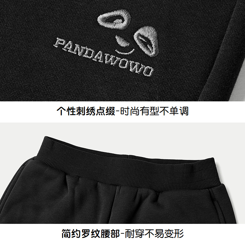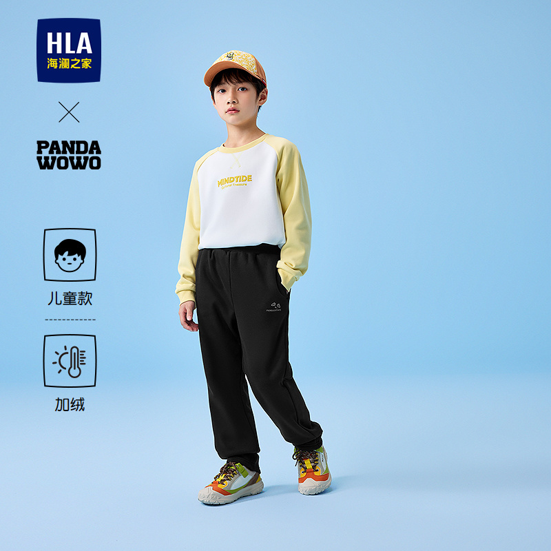 HLA海澜之家panda wowo熊猫童装卫裤25秋冬新加绒裤子男童女童HKZBW4J010A
