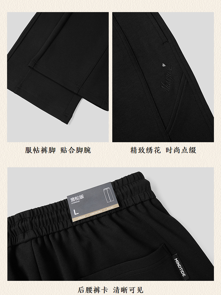 HLA/海澜之家亦心即为系列卫裤26春夏新微弹宽松精致绣花休闲裤男