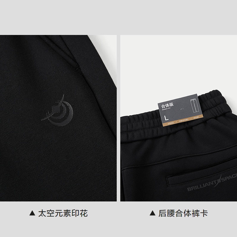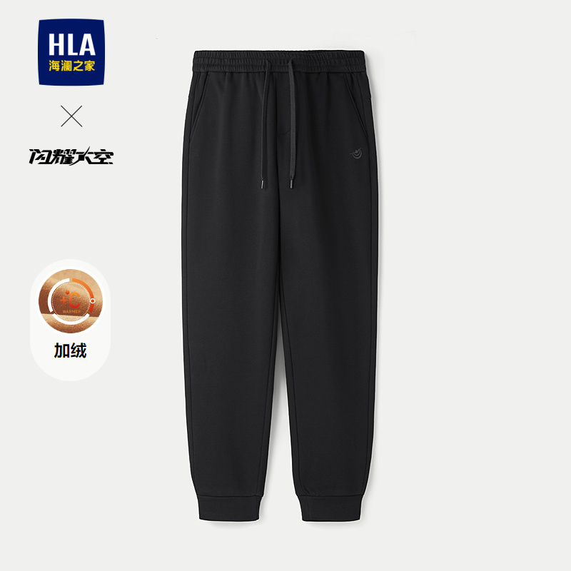 HLA海澜之家闪耀太空卫裤2025秋冬新款抽绳松紧腰印花保暖裤子男HKZWW4J032A