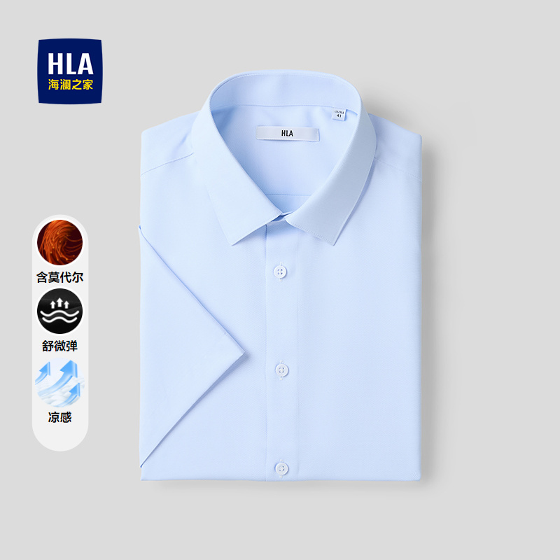 HLA海澜之家含莫代尔短袖衬衫26春夏新舒微弹凉感纯色通勤衬衣男HNCBD2F003A