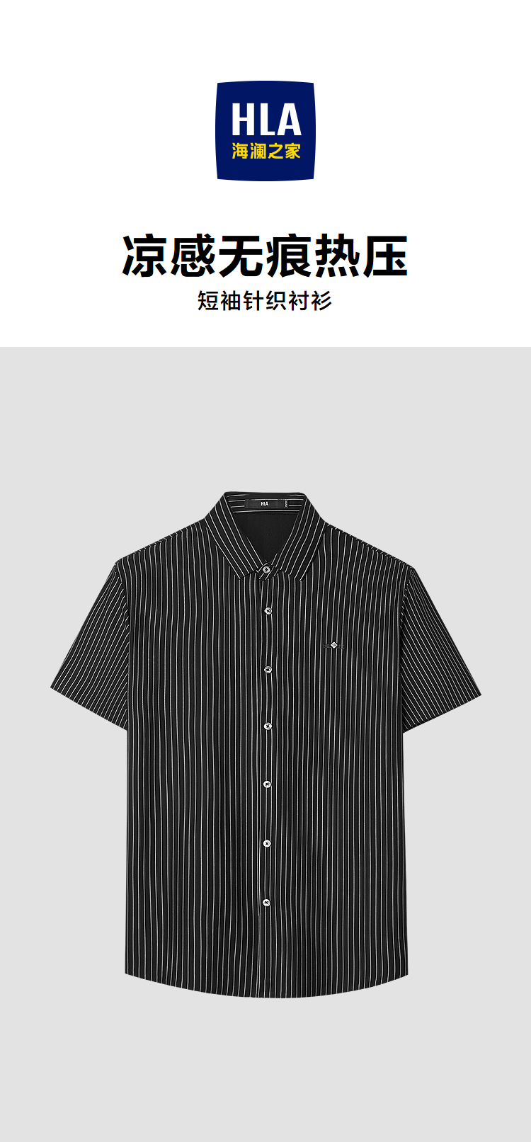 HLA海澜之家条纹短袖针织衬衫26春夏新款凉感无痕热压尖领衬衣男HNDCD2F006A