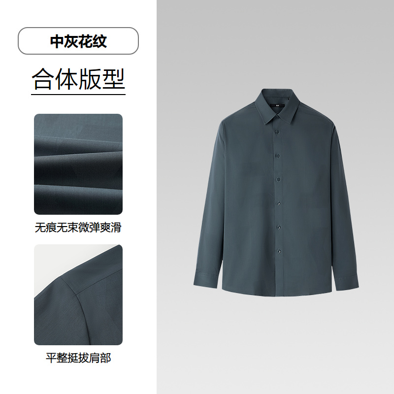 HLA海澜之家无痕科技长袖休闲衬衫25秋季新款翻领提花时尚衬衣男HNEAD3J096A