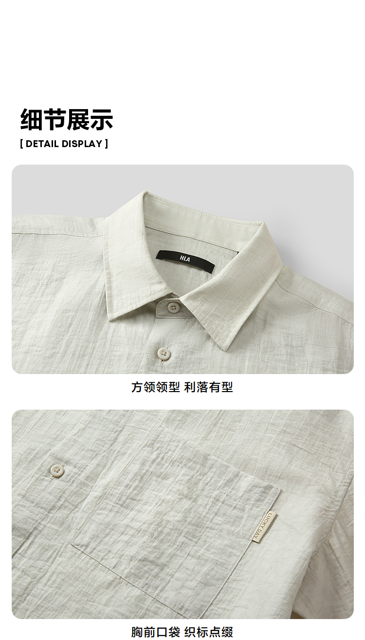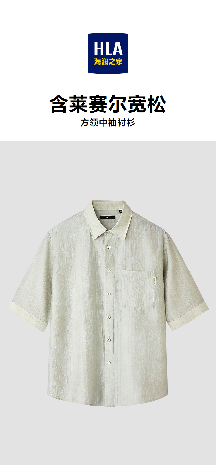 HLA海澜之家宽松中袖衬衫2026春夏新款方领含莱赛尔衬衣男HNEBD2F003A