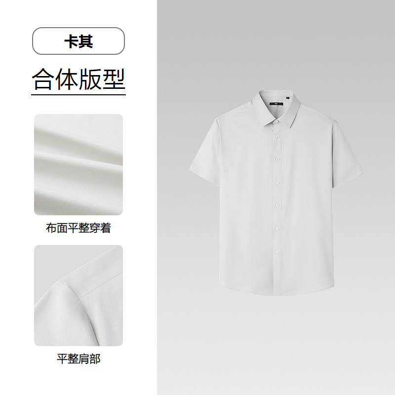 HLA海澜之家无痕科技短袖休闲衬衫2026春夏新款纯色易打理衬衣男HNECD2F011A