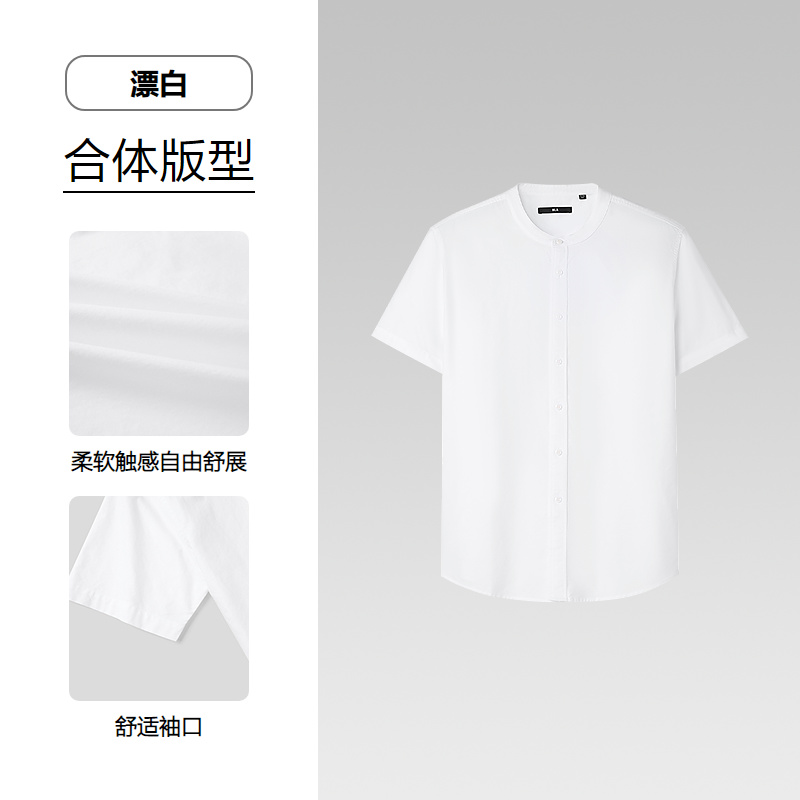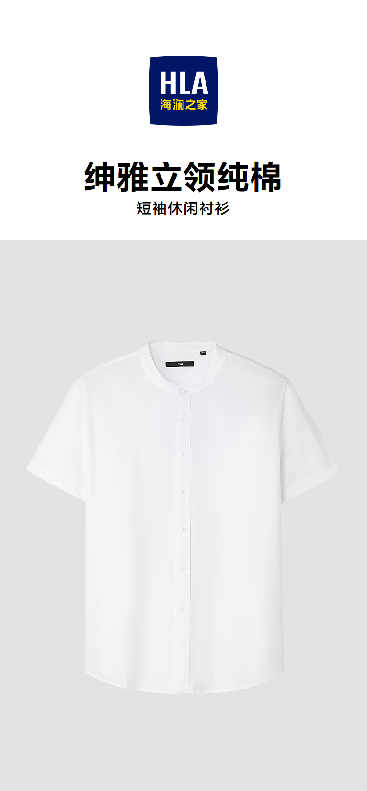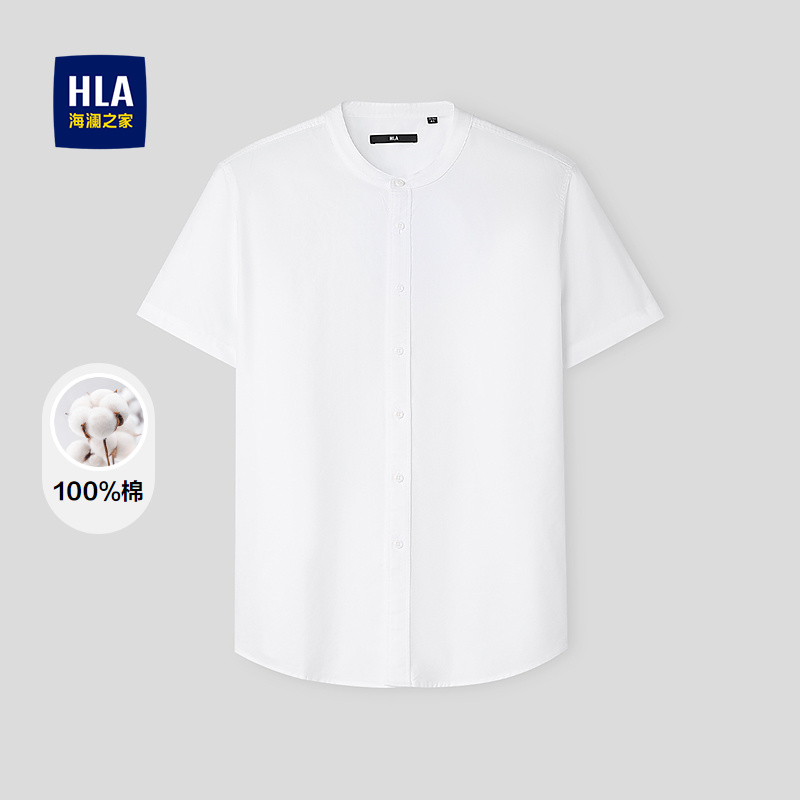 HLA海澜之家雅致短袖休闲衬衫2026春夏新款绅雅立领纯棉衬衣男HNECD2F012A